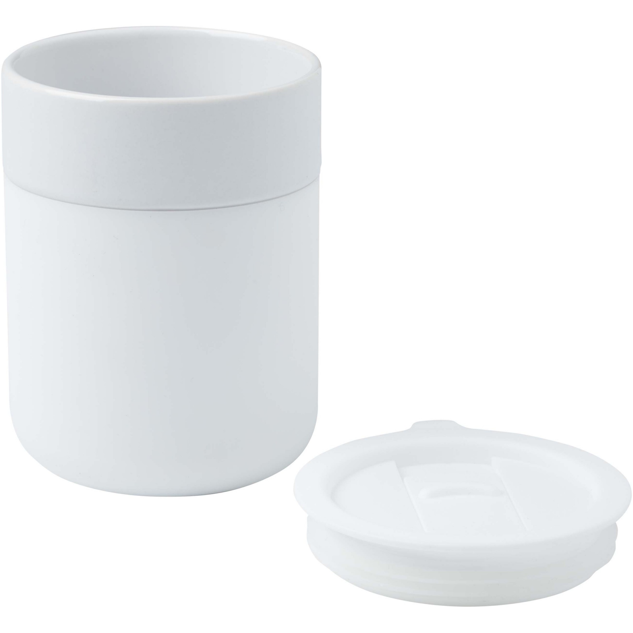 Java керамическая кружка емкостью 330 мл с  пластиковой крышкой, Белый