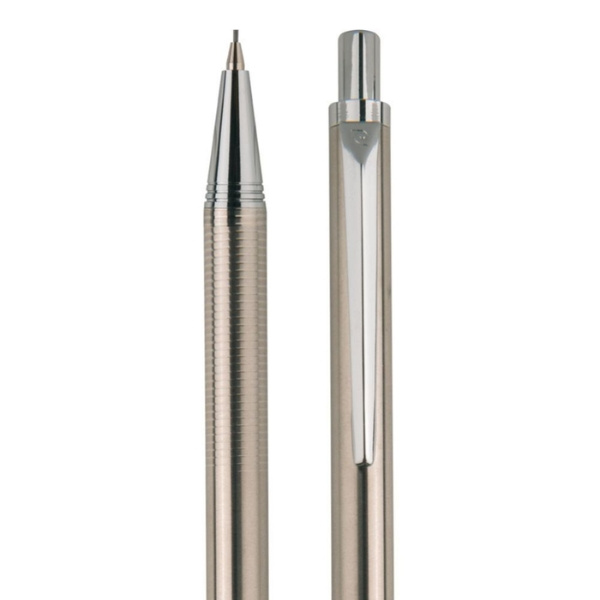 Роскошная шариковая ручка и микрокарандаш Pierre Cardin в серебряном корпусе из алюминия с простым зажимом, тонкая гравировка на поверхности. Шариковая ручка содержит качественный синий стержень с наконечником 1 мм, микрокарандаш с графитом 0,5 мм. Упаковано в роскошный карман Pierre Cardin, поставляется с сертификатом подлинности.
