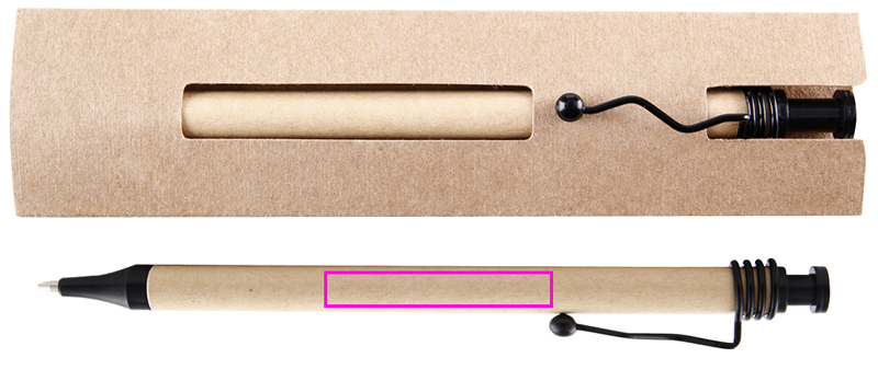 Шариковая ручка с синими чернилами из переработанного картона, с гофрированным металлическим зажимом и пластиковым наконечником, упакована в картонный футляр. Мы напечатаем ваш логотип под зажимом.