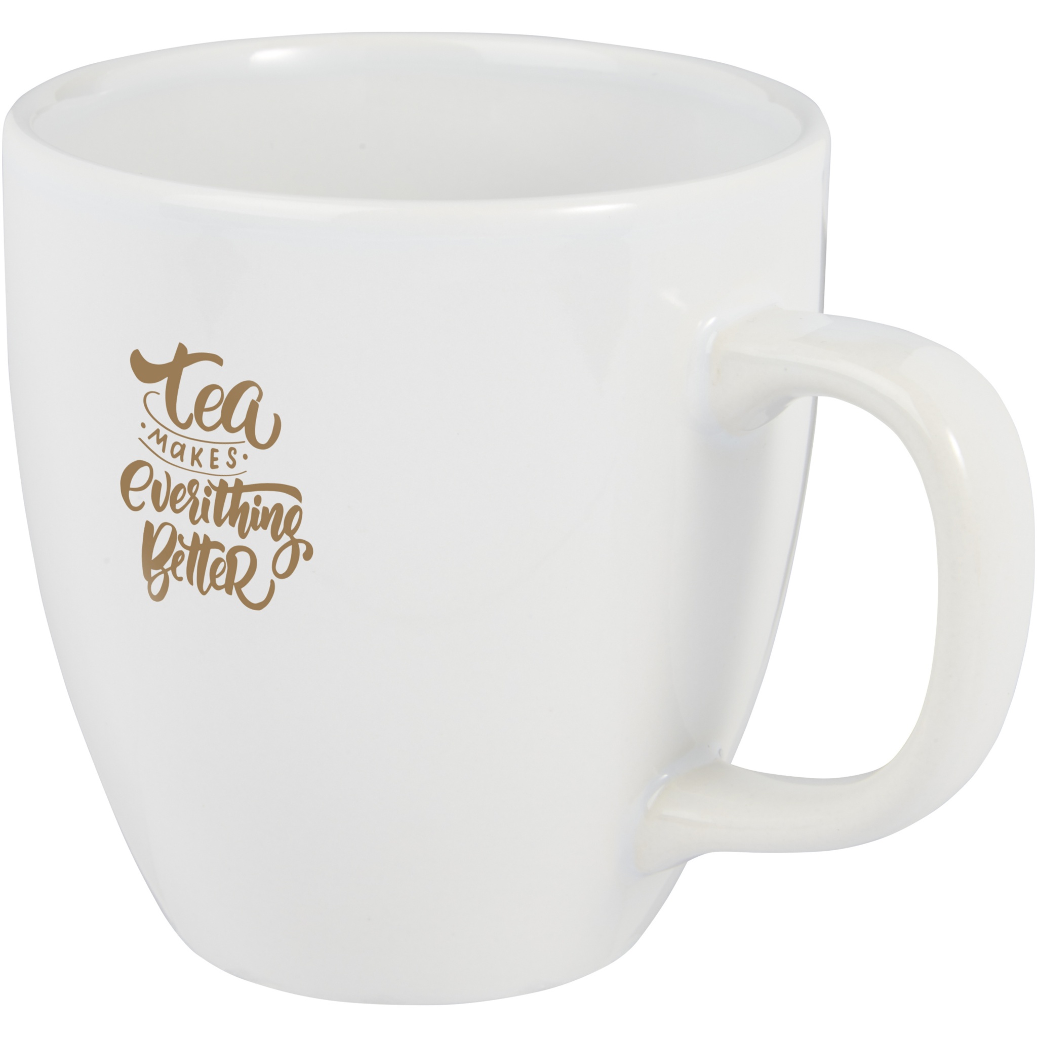 Керамическая кружка Moni имеет модное глянцевое покрытие, дающее ощущение гладкости при прикосновении. Благодаря большой ручке кружку удобно держать. Кружка достаточно универсальна для использования как с горячими, так и с холодными напитками, что позволяет наливать в нее кофе, чай, суп и прочие жидкости. Объем 430 мл. Можно мыть в посудомоечной машине независимо от методов нанесения печати. В подарочной коробке из переработанного картона.