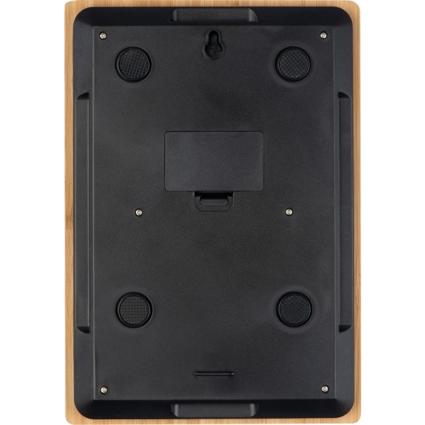 Цифровые кухонные весы Bamboo с черным дисплеем. Максимальный вес загрузки составляет 5 кг, уведомления могут отображаться в кг/г/унциях с точностью до 1 г. Ваш логотип будет выгравирован на бамбуковой поверхности.