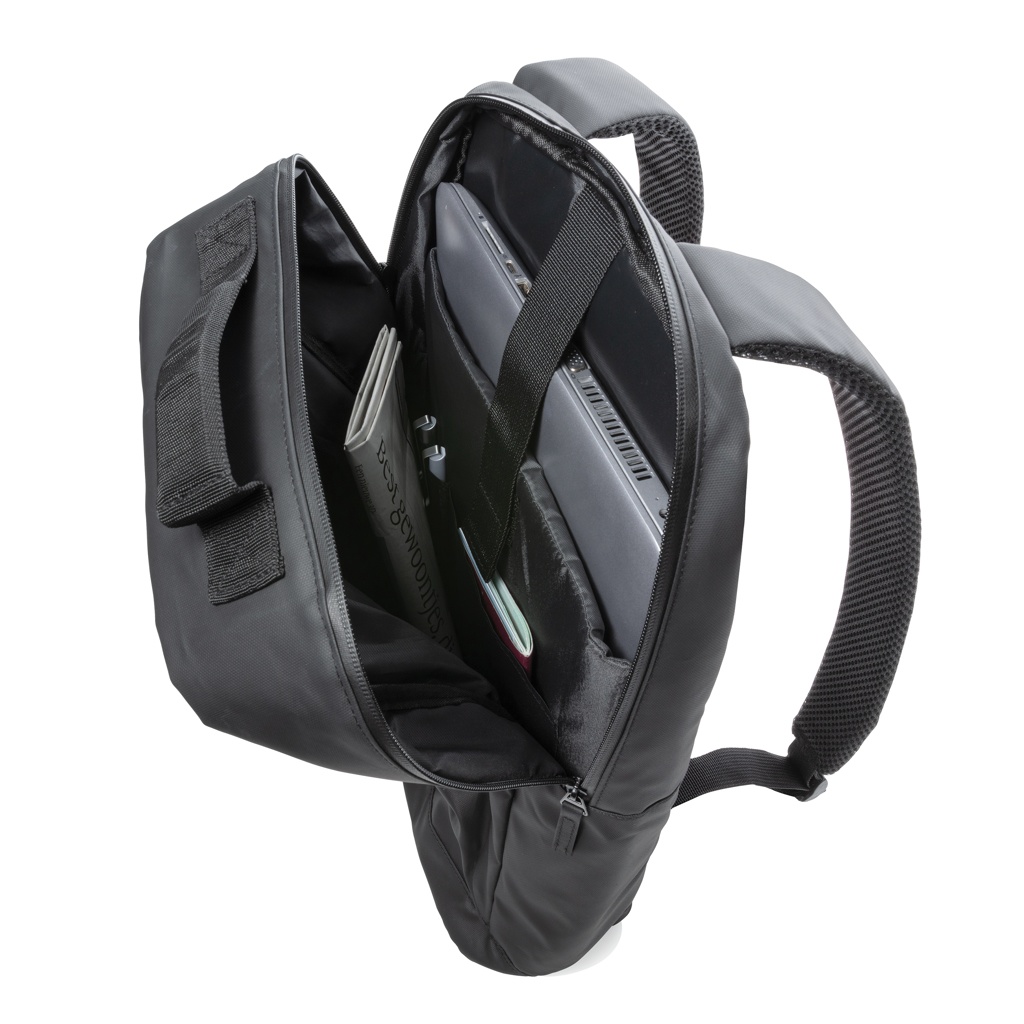 Выглядите стильно и непринужденно, неся этот полностью черный рюкзак для ноутбука. Эта сумка имеет просторное отделение для всего вашего снаряжения и отделение для ноутбука, в которое помещается ноутбук 15,6". Не содержит ПВХ.