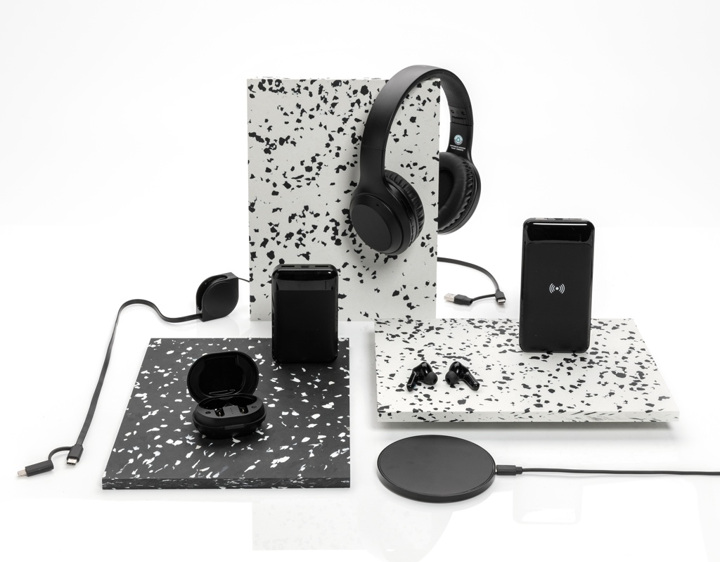 Складные беспроводные наушники, корпус которых изготовлен из переработанного АБС-пластика, сертифицированного RCS. RCS (стандарт утверждения о переработке) — это стандарт для проверки переработанного содержимого продукта по всей цепочке поставок. Общее количество переработанного содержимого: 65% от общего веса изделия. Беспроводные наушники используют BT 5.0 для сверхплавного соединения и длительного времени воспроизведения. Конструкция наушников-вкладышей обеспечивает идеальное звучание. Встроенный литиевый аккумулятор емкостью 200 мАч обеспечивает время воспроизведения до 6 часов и может быть полностью перезаряжен за 1,5 часа. Рабочее расстояние до 10 метров. С микрофоном и функцией захвата. Изделие и аксессуары не содержат ПВХ. Включая зарядный кабель из переработанного материала TPE без ПВХ.