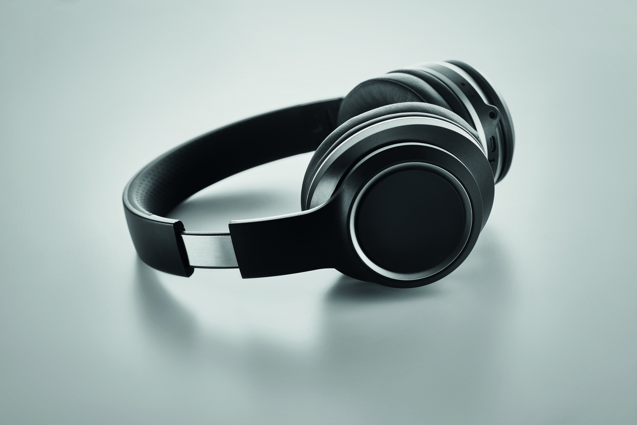 Складные 5.0 беспроводные наушники с активным шумоподавлением (ANC) из ABS. Перезаряжаемый литий-ионный аккумулятор 500 мАч. Функция громкой связи и встроенный микрофон. Время воспроизведения прибл. +10 часов. В комплекте кабель для зарядки micro USB. Все представлено в чехле из полиуретана. Радиус действия: 10 м.