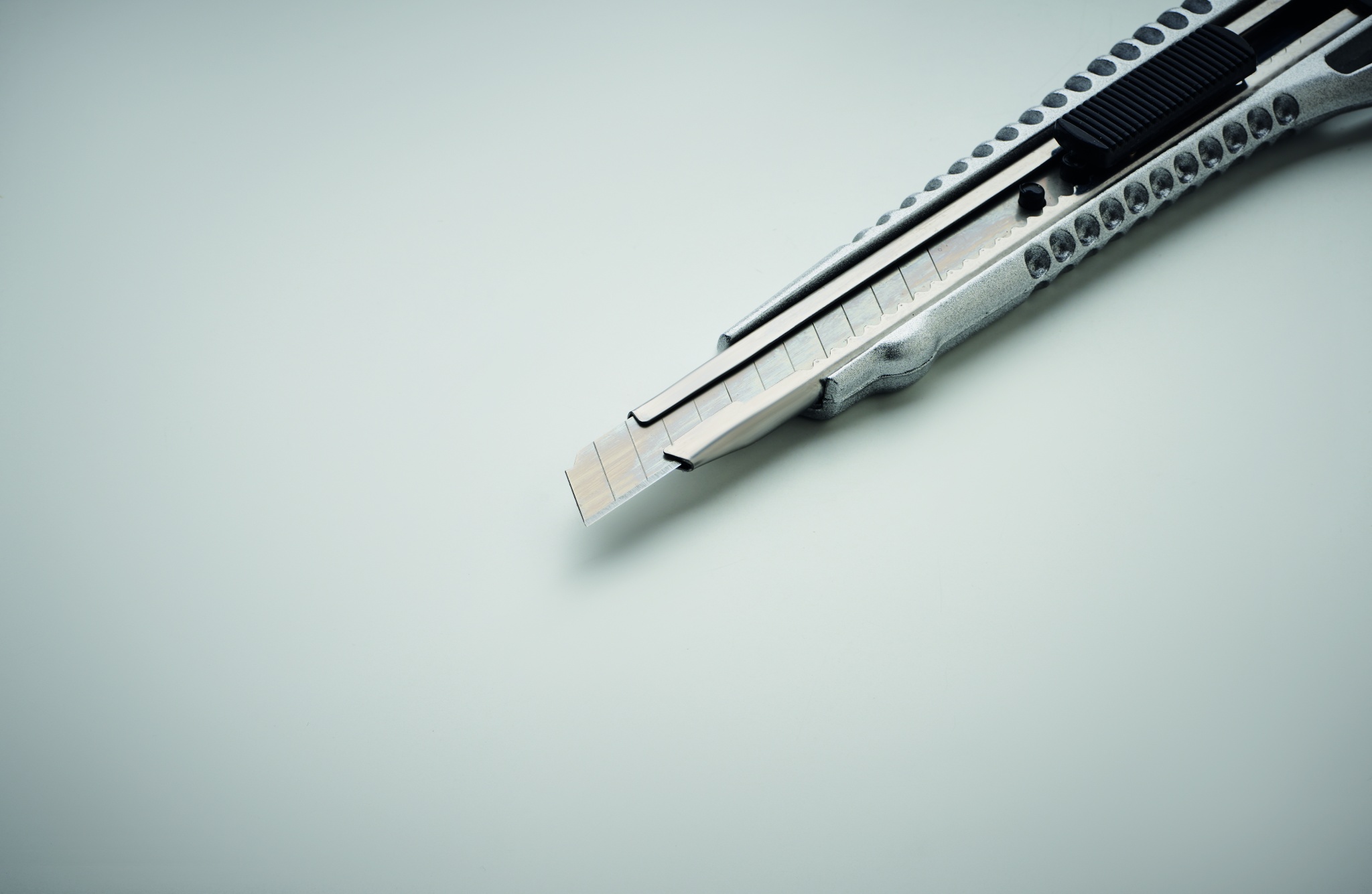 Канцелярский нож из алюминия с 13 лезвиями из углеродистой стали.