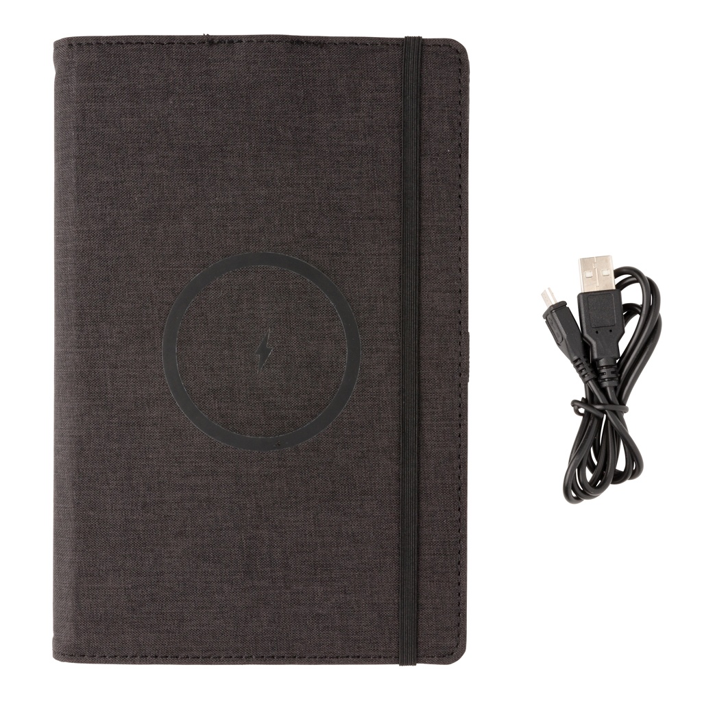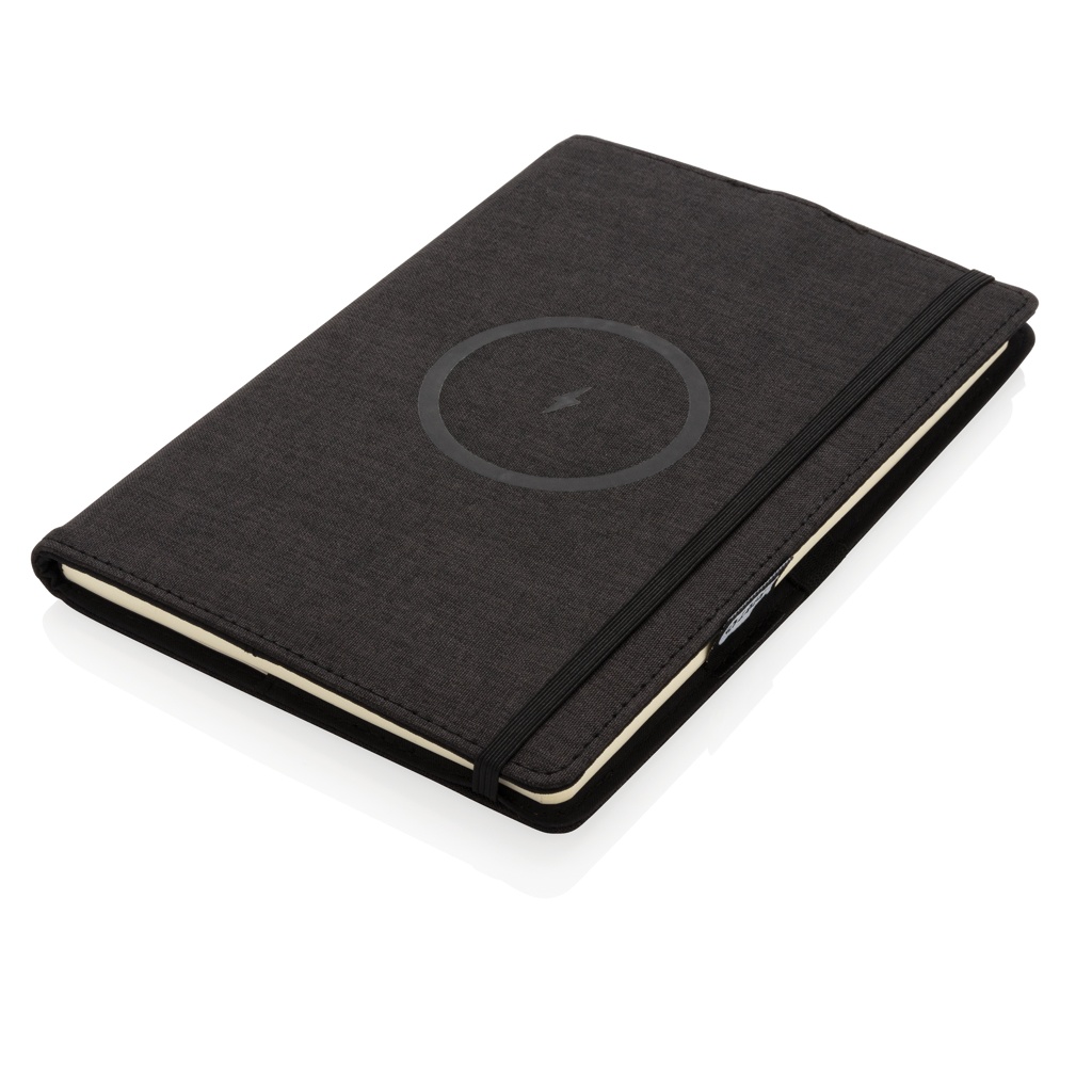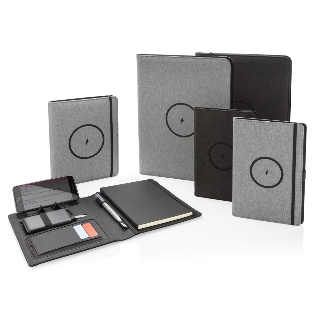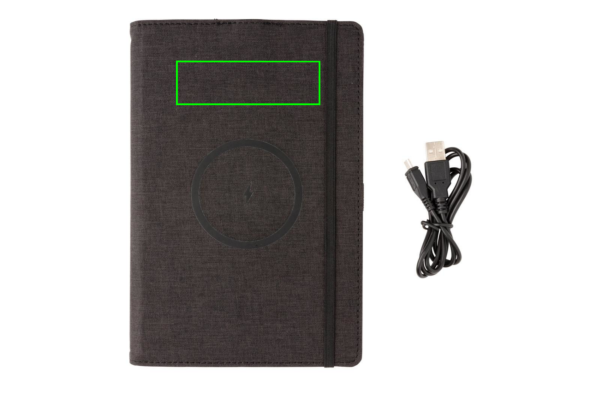 Лого трейд бизнес-подарки фото: Обложка для ежедневника Air 5W с беспроводной зарядкой и возможностью перезарядки A5