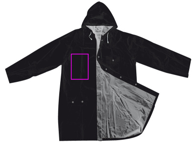 Двусторонняя куртка-дождевик из ПВХ с капюшоном, двумя карманами и кнопками. Спинка куртки - 103 x 60 см.