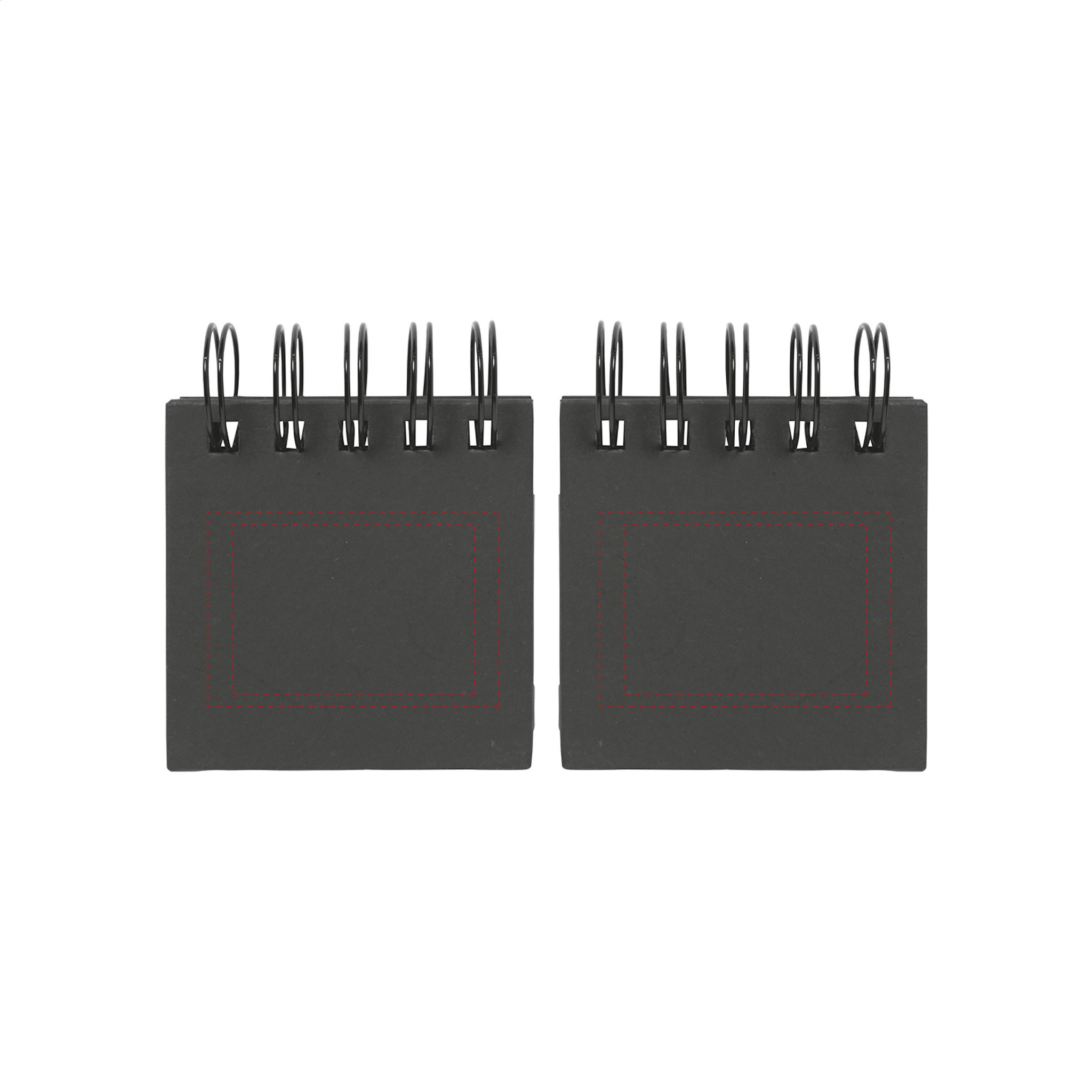 Блок с примерно 75 самоклеящимися листами для заметок и 125 наклейками для маркировки разных цветов. Обложка из переработанного картона. Переплет в привлекательную металлическую проволоку.