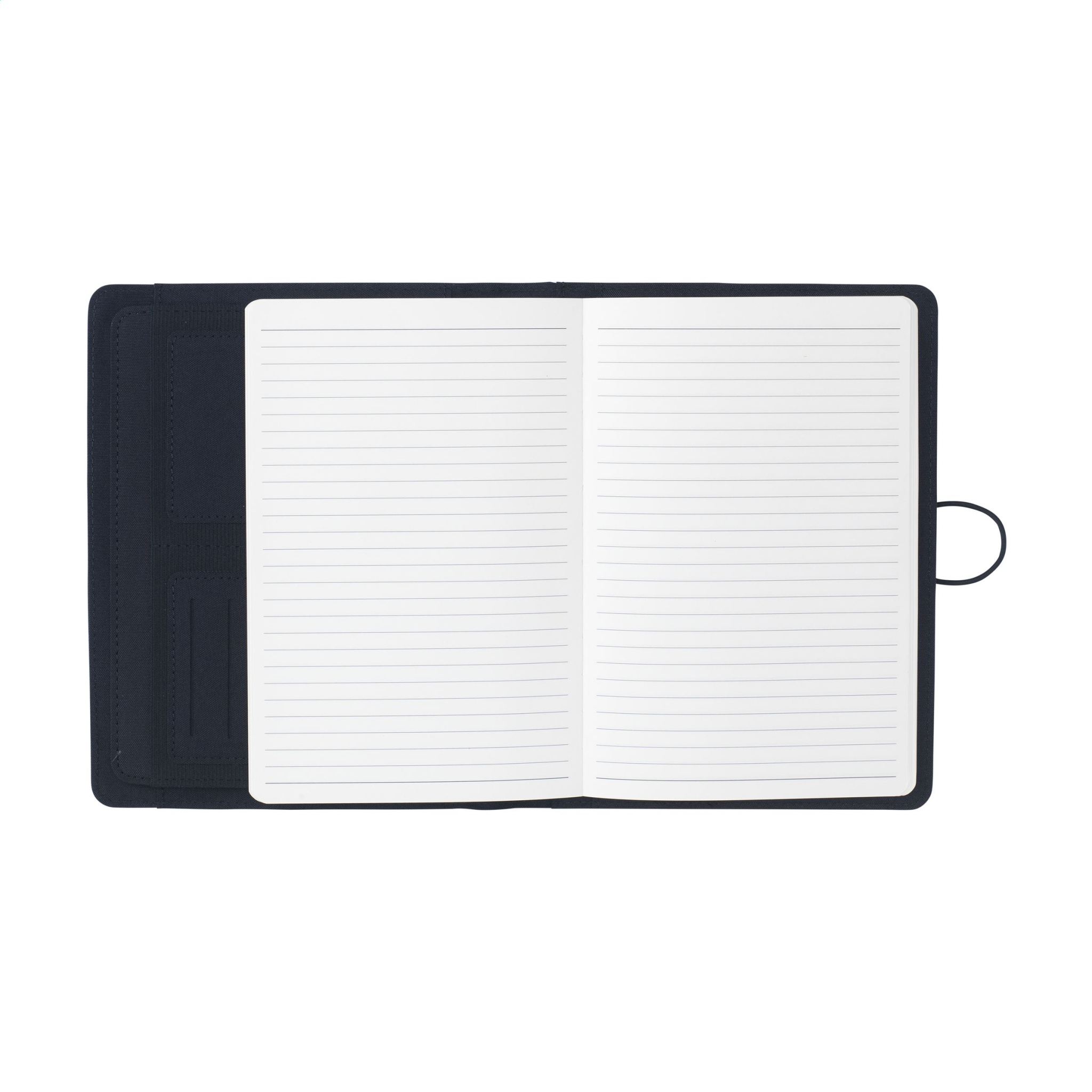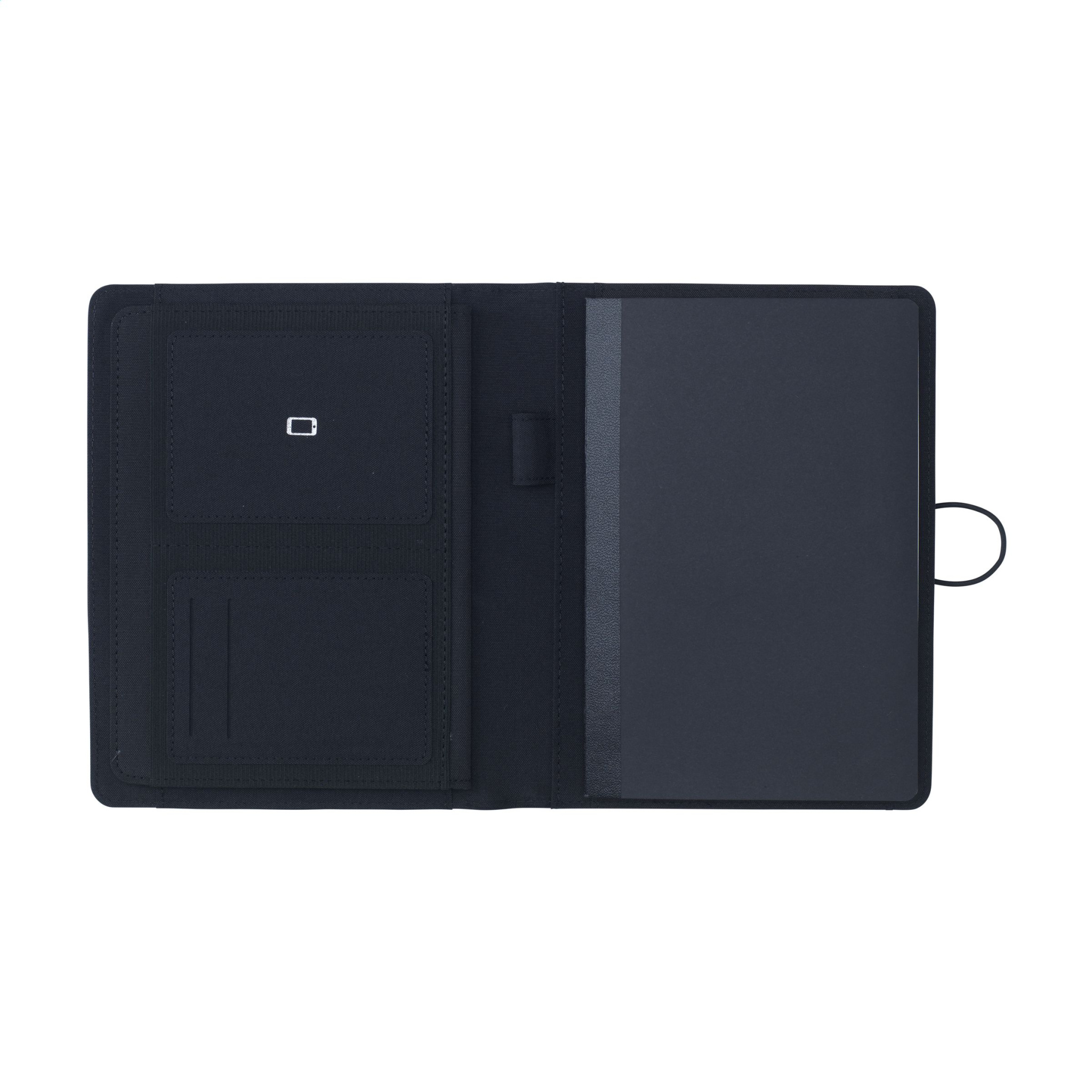 WoW! Современная папка для конференций/документов формата А5 из материала RPET. Оснащена различными вставными карманами, включая отдельное отделение для хранения мобильного телефона, два отделения для карточек и петлю для крепления ручки. Включает блокнот с примерно 64 листами сертифицированной FSC® кремовой линованной бумаги (70 г/м²).