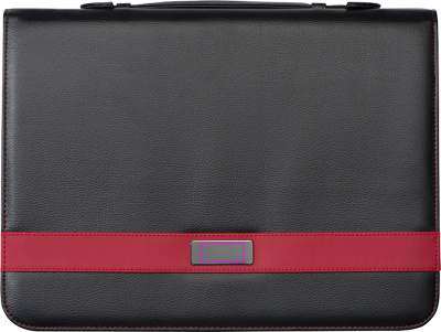 Кейс для записей формата А4 с лучшей Bonded Leather (ткань из кожзаменителя), различными резиновыми петлями и накладными карманами, вкладышем для папки-регистратора, блокнотом (60 страниц), держателем для планшета/смартфона, карманом для мобильного телефона, ручкой для переноски и застежкой-молнией. Ваш логотип будет выгравирован лазером на внешней стороне металлической пластины.