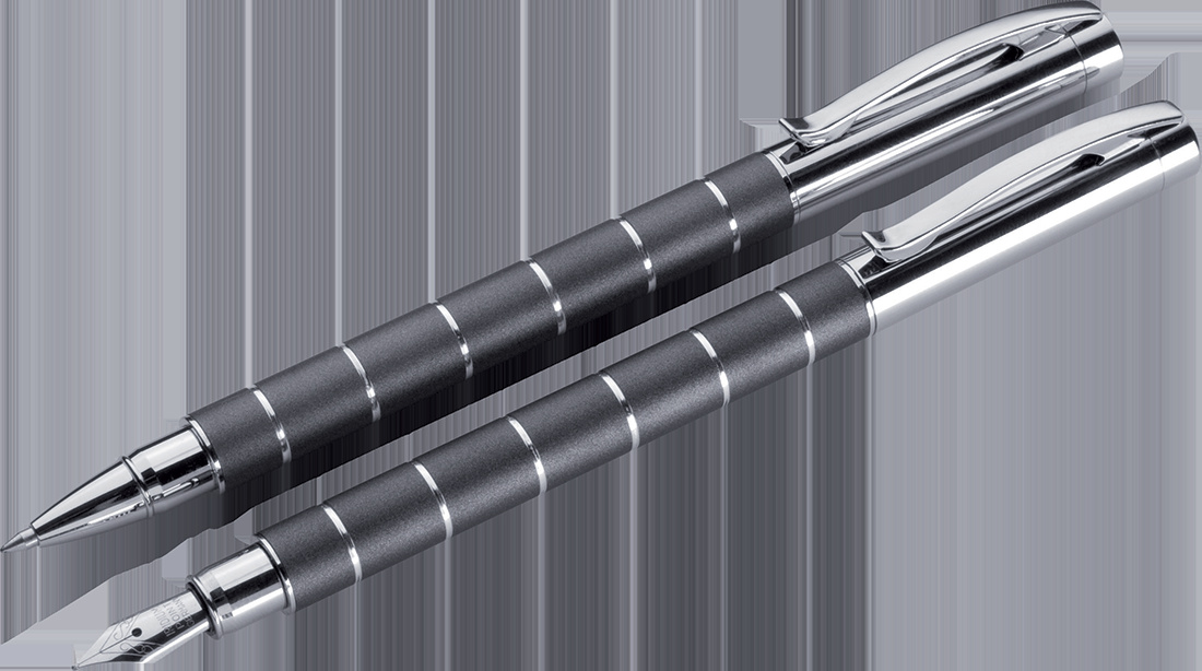 Письменный набор, состоящий из высококачественного футляра с клапаном, шариковой ручки с большим черным пластиковым стержнем и перьевой ручки. Ваш логотип будет нанесен лазером на оба пишущих инструмента. Цена лазера для обоих пишущих инструментов.