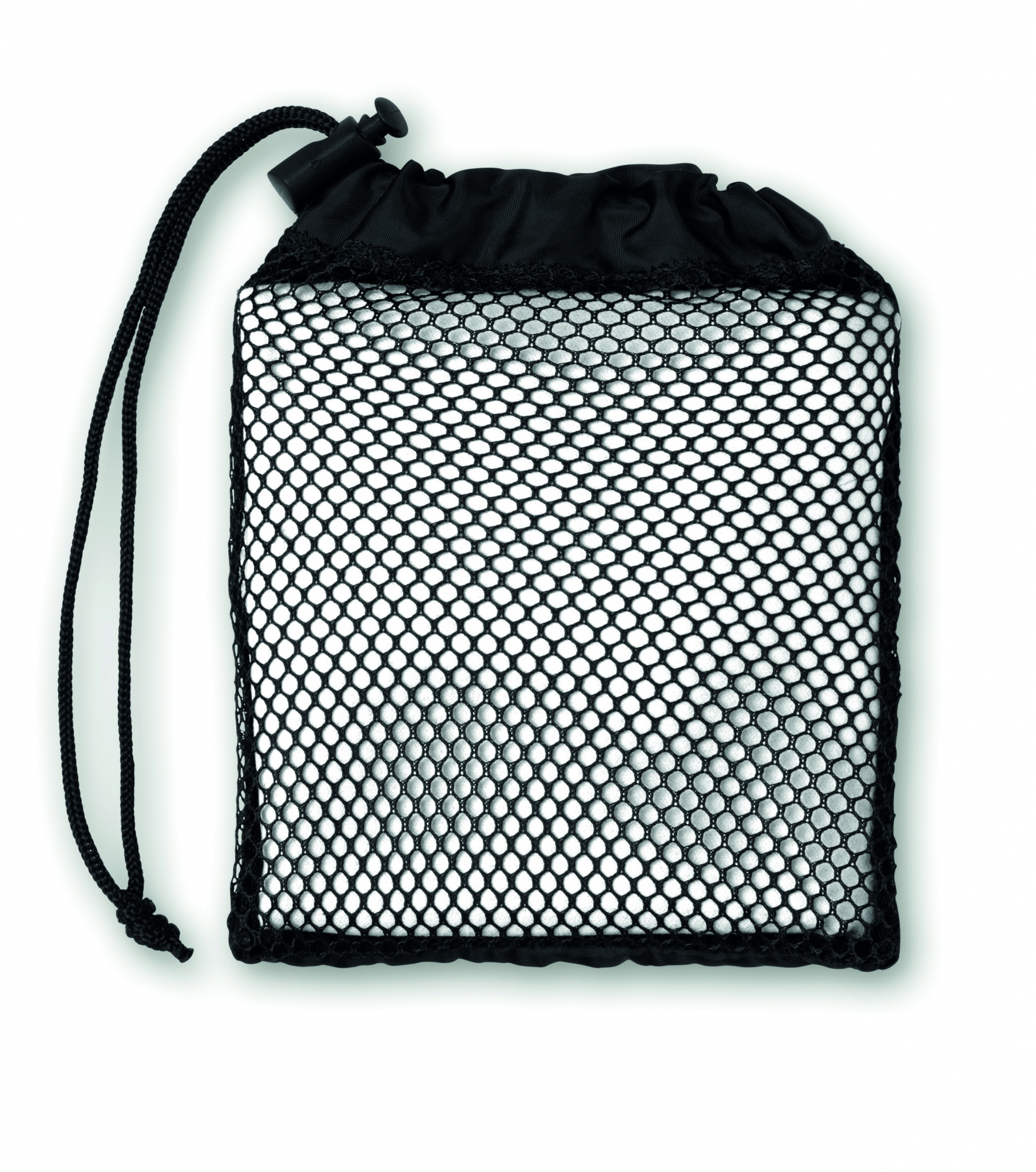 Спортивное полотенце из полиамида (20%) и микрофибры (80%) в сетчатом мешочке.