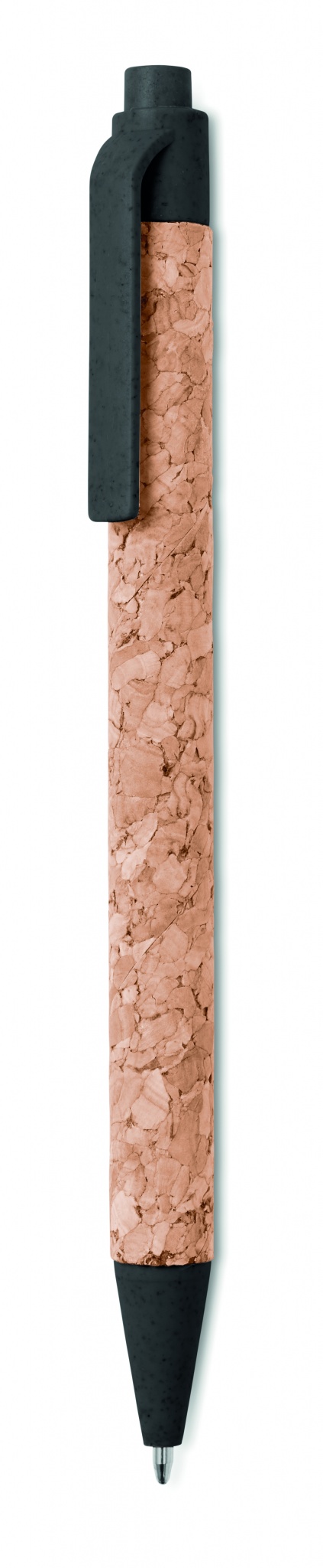 Нажимная шариковая ручка с пробковым корпусом и эко составом из пшеницы/соломы (50%) и пластика ABS (50%). Синие чернила.