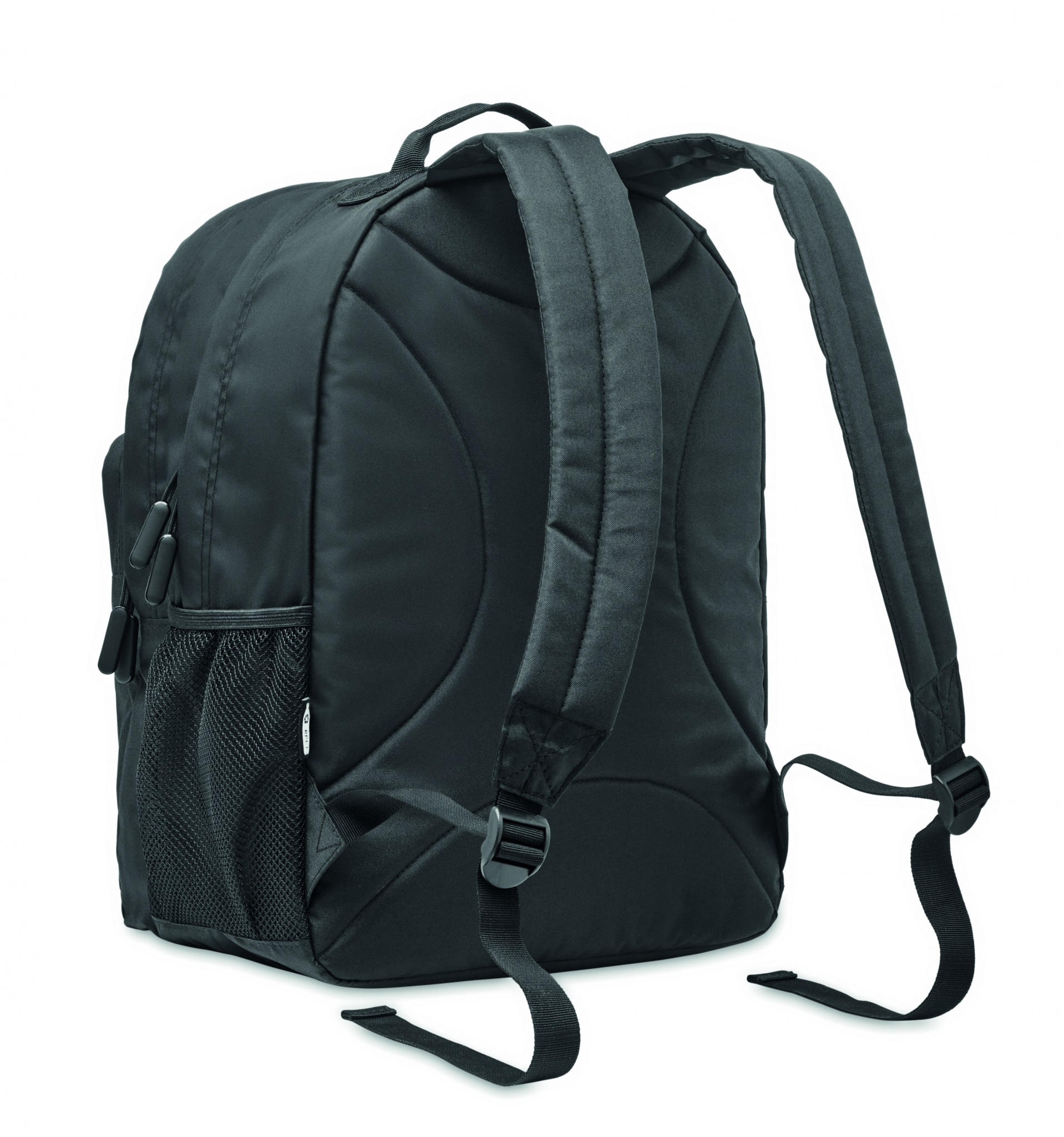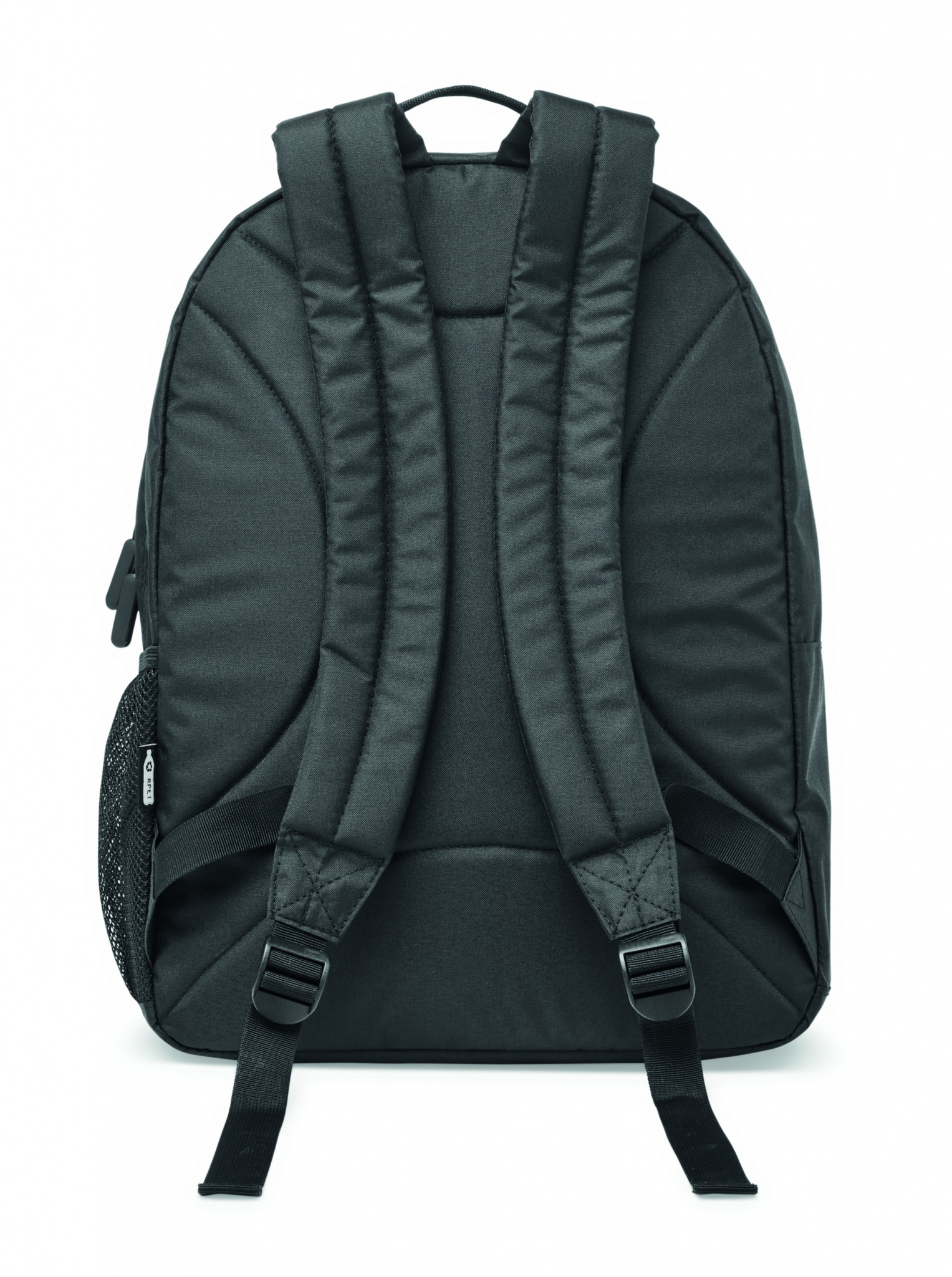 Рюкзак для ноутбука 15 дюймов из полиэстера 300D RPET. Имеет 2 больших отделения на молнии, двойные передние карманы на молнии и сетчатый боковой карман. Спинка, дно и плечевые ремни с мягкой подкладкой