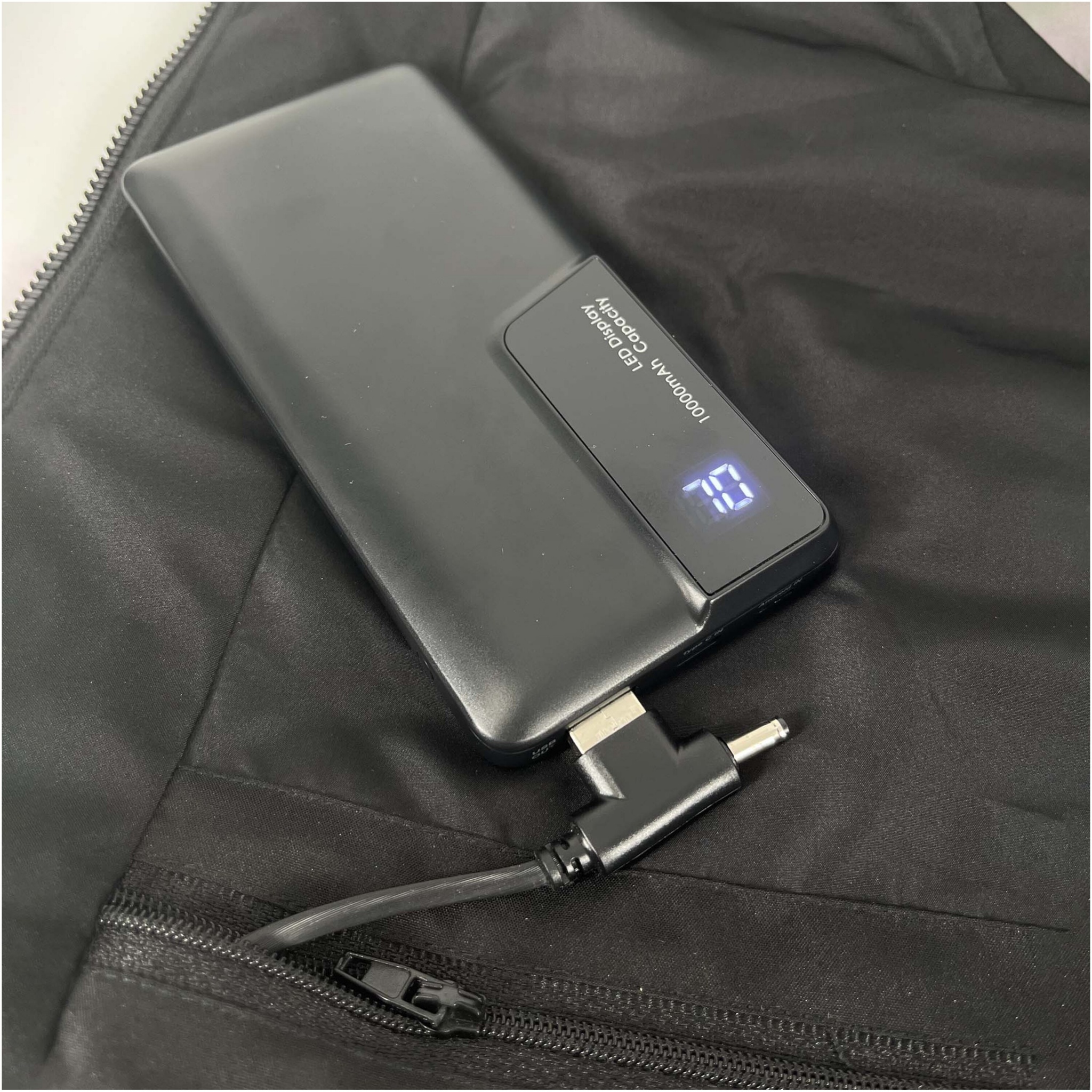 Инновационный универсальный ветрозащитный жилет равномерно согревает благодаря 11 нагревательным накладкам, расположенным спереди, сзади и сверху жилета. Доступны три уровня температуры (низкий, средний и высокий). Доступны четыре различных размера: S-M (длина 58 см х грудь 48 см), M-L (длина 64 см х грудь 54 см) и L-XL (длина 66 см х грудь 60 см), XXL-XXL (длина 74 х грудь 66 см). Жилет был разработан с боковыми молниями, благодаря чему он идеально подходит для любой формы тела и для людей, которые хотят сохранить свободу движения в холодную погоду. Портативное зарядное устройство на 10 000 мА·ч входит в комплект поставки и уже подключено для удобства использования. Упаковывается в пакет из ТПУ (38 x 30 см).