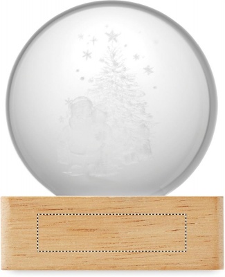 Хрустальный рождественский шар со светодиодной подсветкой (100 люмен) на деревянной подставке с каучуковым дном. В комплект входит USB-кабель для зарядки (90 см).