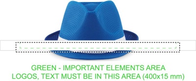 Шляпа из полиэстера, выглядит, как солома, декорирована ремешком. Для заказов без нанесения, лента комплектуется отдельно от изделия.