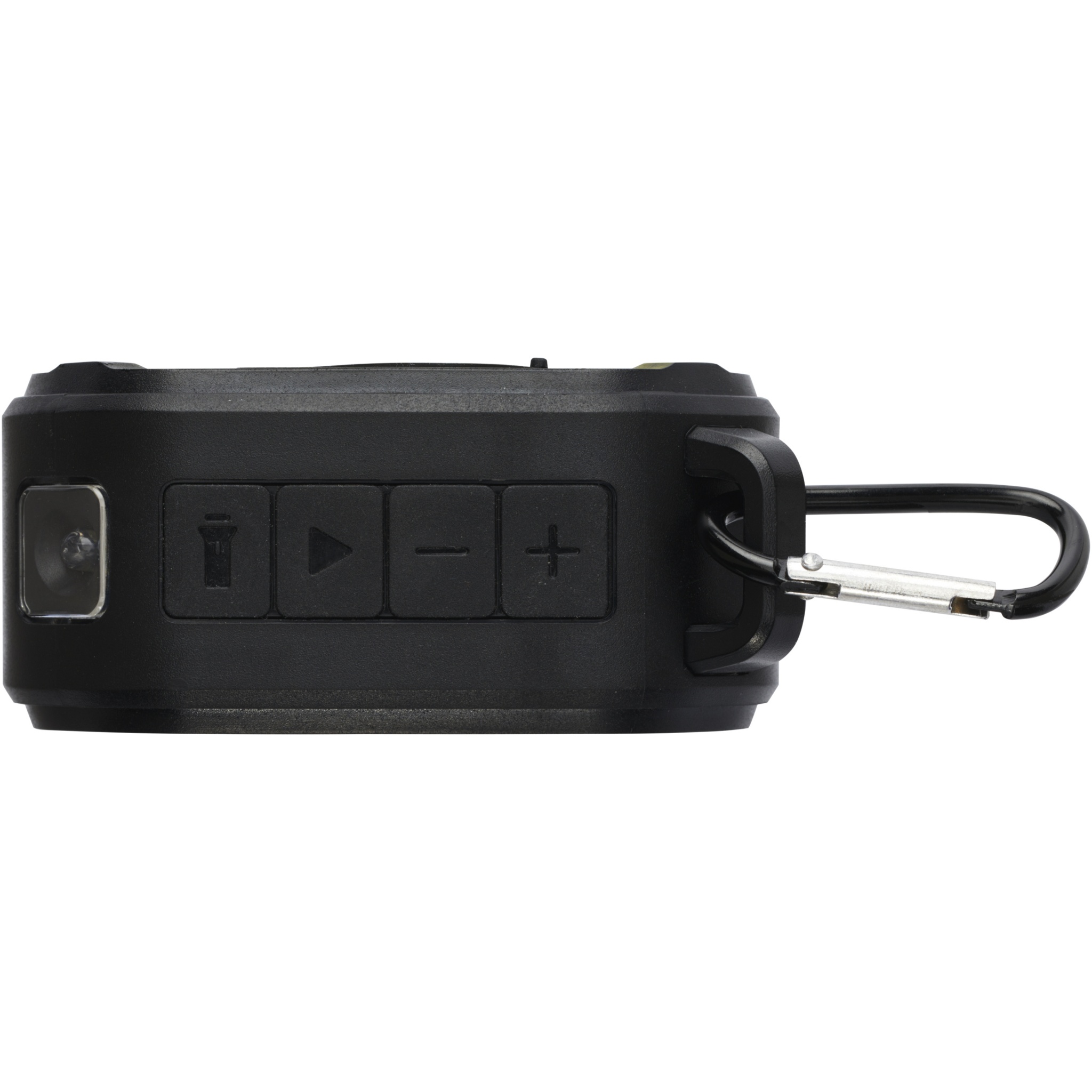Улучшите свою музыку с помощью данной прочной колонки из переработанных материалов, сертифицированных RCS, мощностью 3 Вт с функцией Bluetooth®, солнечной батареей и фонариком! Она воспроизводит музыку, подкасты и т. д. с любого устройства с поддержкой Bluetooth®, что делает ее идеальным спутником в путешествии. Колонка оснащена встроенными элементами управления музыкой и микрофоном для телефонных звонков в дороге, а также удобным фонариком. С помощью входящего в комплект карабина ее можно легко прикрепить, например, к рюкзаку, а благодаря классу IPX5 динамик защищен от сильного дождя. Благодаря литий-ионному аккумулятору емкостью 400 мАч вы можете наслаждаться музыкой до 3-4 часов на максимальной громкости. Время зарядки составляет 2 часа с помощью кабеля и примерно 6 часов с помощью солнечной панели (в зависимости от яркости/постоянства солнечного света). Время работы фонарика составляет 10 часов при выключенной функции динамика. Bluetooth® 5.3 с радиусом действия около 10 метров. Поставляется с руководством пользователя и зарядным кабелем длиной 30 см с USB-A на Type-C, упакована в коробку из 100% крафт-бумаги вторичной переработки.