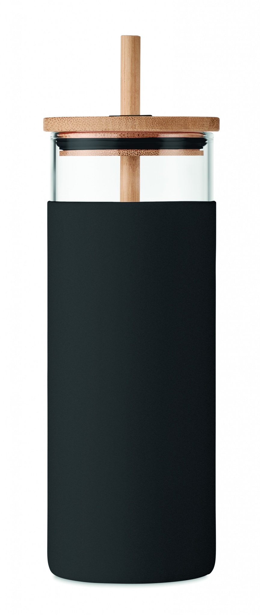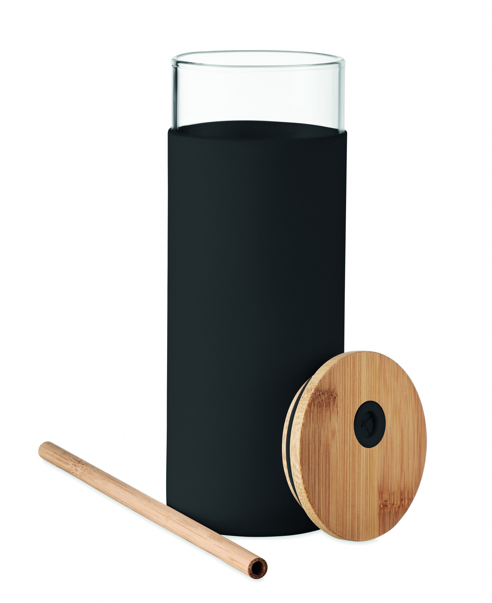 Стакан из боросиликатного стекла с силиконовым защитным чехлом, бамбуковой крышкой и соломинкой. Емкость: 450 мл. Поскольку это кружка одностенная, она нагревается