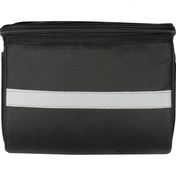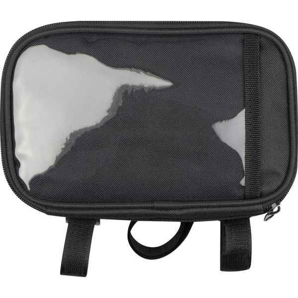 Сумка для велосипеда, крепящаяся на руль, с большим основным отделением, отделением для смартфона, которым можно управлять с помощью прикосновения через пленку. Светоотражающая полоса спереди также привлекает к вам внимание. Ваш логотип будет напечатан на сумке.