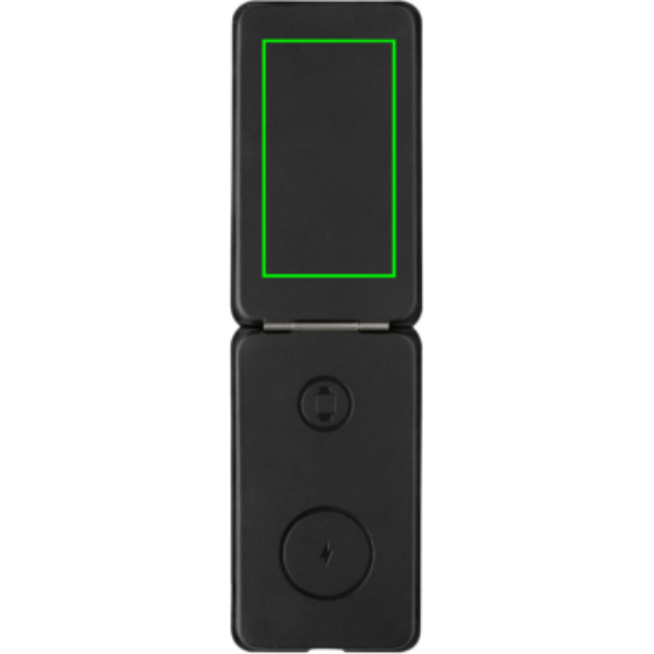 Роскошное складное беспроводное зарядное устройство 3 в 1, изготовленное из переработанного полиуретана, сертифицированного RCS. Общее содержание переработанных материалов: 5% от общего веса изделия. Сертификация RCS гарантирует полностью сертифицированную цепочку поставок переработанных материалов. Беспроводное зарядное устройство оснащено магнитным беспроводным зарядным устройством мощностью 15 Вт спереди. На обратной стороне находится дополнительное беспроводное зарядное устройство мощностью 5 Вт, подходящее для чехлов для наушников или других небольших беспроводных заряжаемых устройств, и беспроводное зарядное устройство мощностью 2,5 Вт для смарт-часов (только для часов Apple). Включает сертифицированный RCS 120-сантиметровый переработанный кабель TPE. Упаковано в упаковку FSC® mix kraft. Изделие и аксессуары на 100% не содержат ПВХ. Вход: 9 В/3 А для оптимального использования. Выход: Передняя панель: 9 В/1,1 А; 9 В/1,67 А/(15 Вт), Наушники: 5 В/1 А (5 Вт), Часы: 5 В/0,5 А.