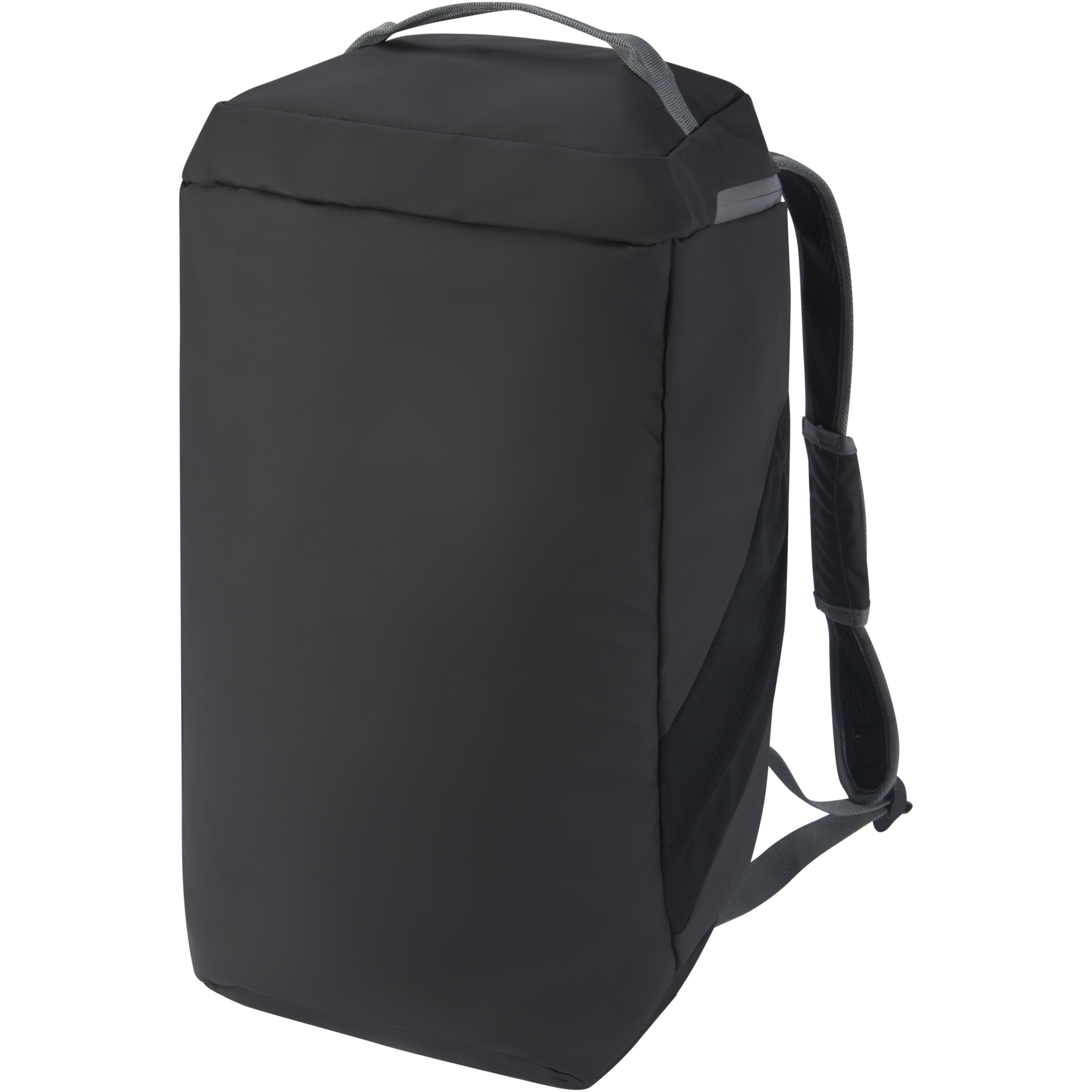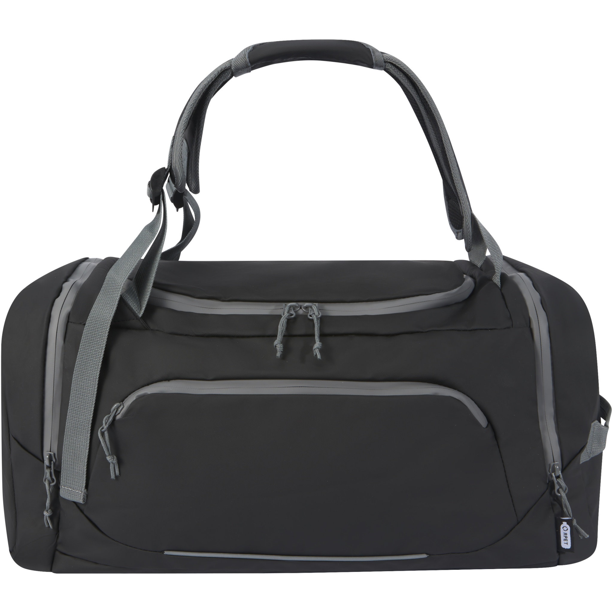 Водонепроницаемая спортивная сумка-рюкзак 2-в-1, изготовленная из переработанных материалов, сертифицированных согласно стандарту GRS, включая молнии. Имеет просторное основное отделение с U-образным отверстием для удобного хранения и доступа, два боковых кармана на молнии (включая отделение для обуви), один передний карман на молнии, сетчатый карман для бутылки с водой сзади и светоотражающую окантовку для видимости. Эту сумку можно носить 3 различными способами: в руке, через плечо или как рюкзак благодаря мягким регулируемым плечевым ремням. Из переработанных материалов, сертифицированных по стандарту GRS, изготовлены основная ткань, подкладка, лямки и застежки-молнии. Емкость: 35 литр. Не содержит ПВХ.