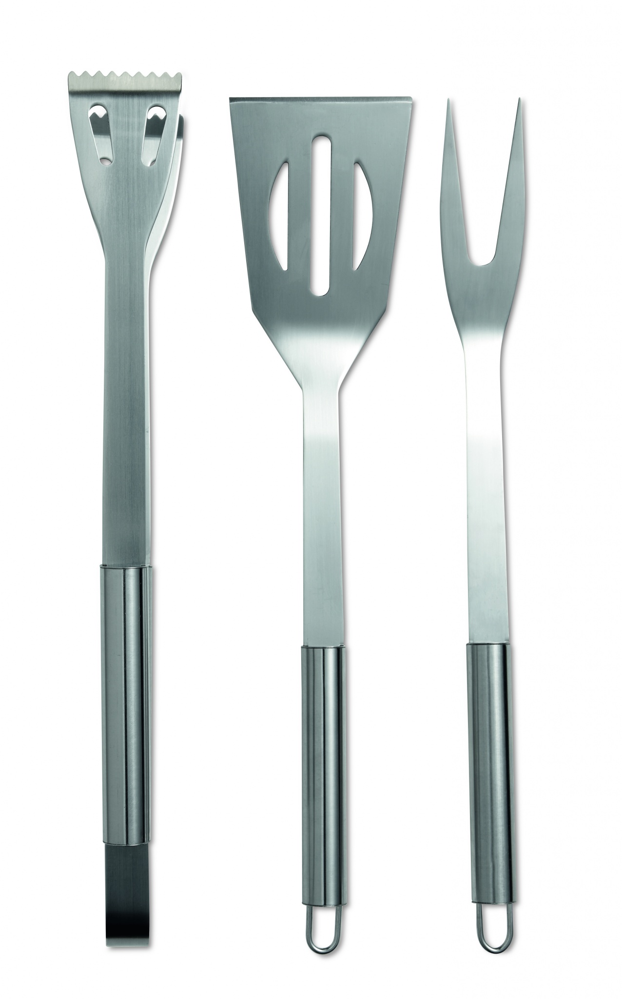 Set med 3 grillredskap i rostfritt stål kommer i non-woven påse med blixtlås.