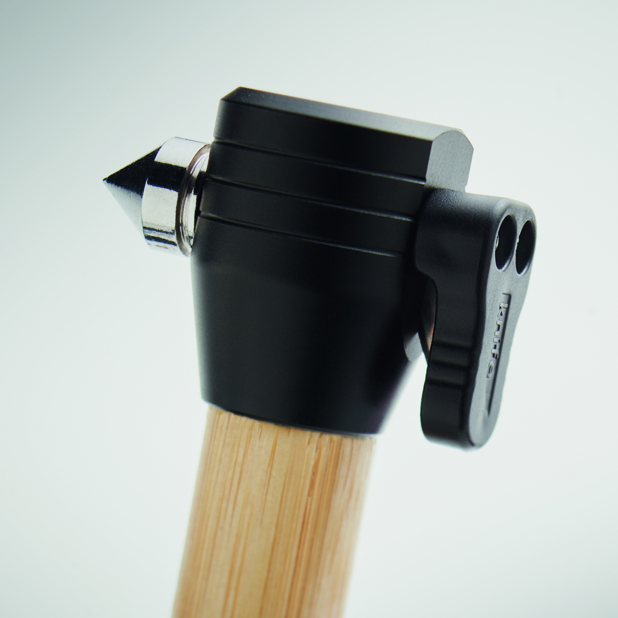 3-i-1 bambuficklampa med nödhammare och säkerhetsbälteskniv, Trä
