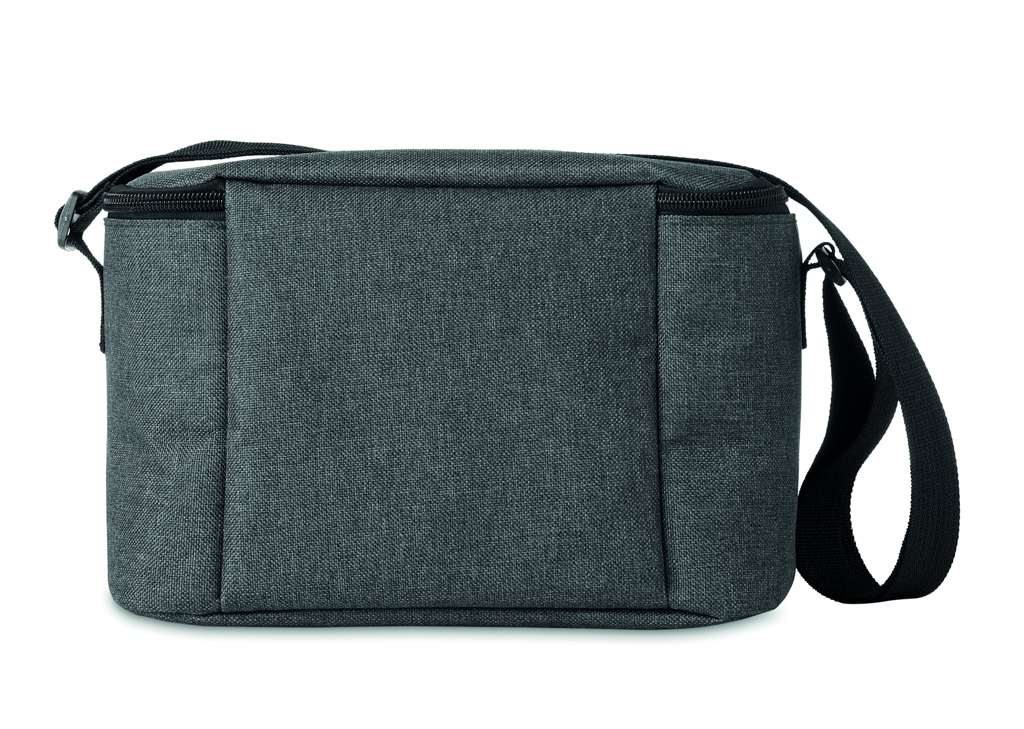 Kylväska för 6st burkar i 2 färgad 600D RPET med frontficka. Isolations material: 0.15mm PEVA + 3mm foam.
