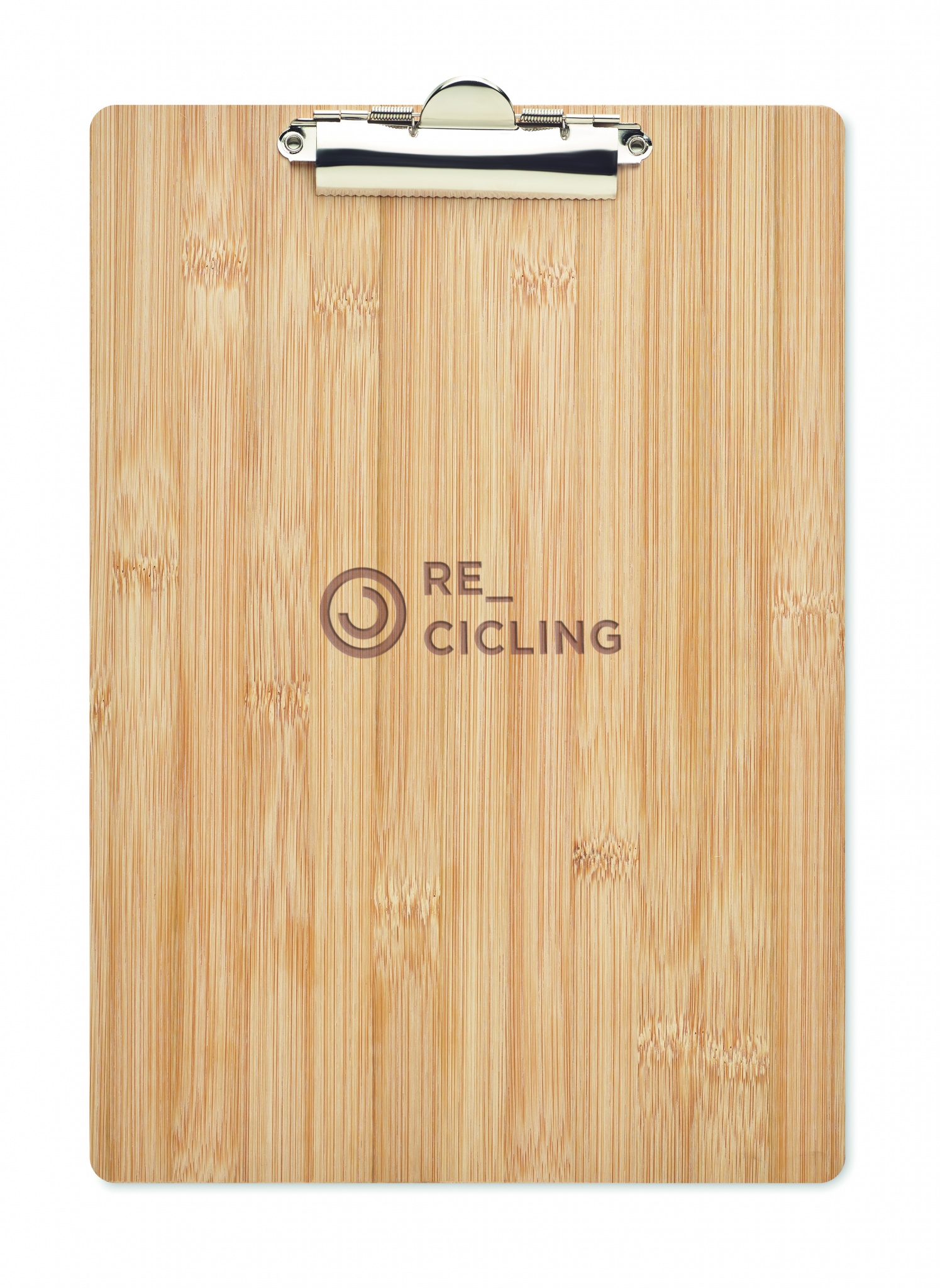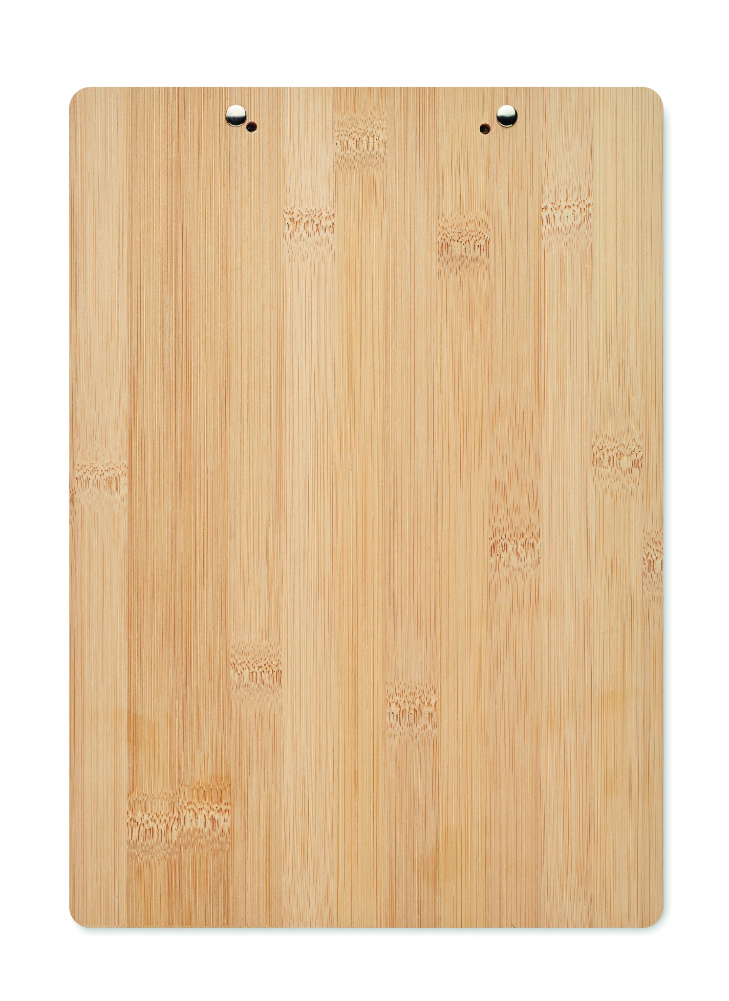 A4 Skrivplatta i bambu med klämma för att fästa block eller dokument.