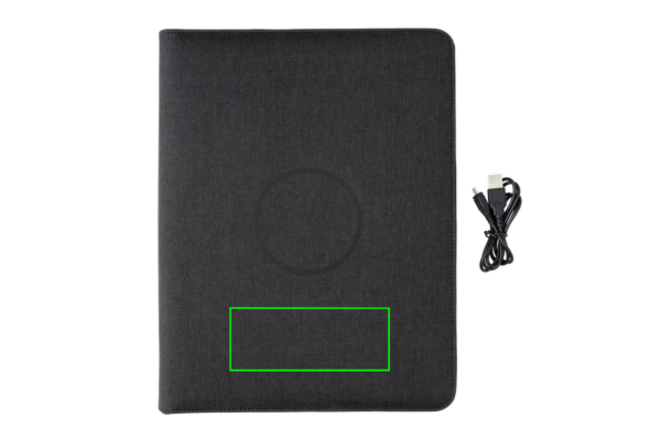 Logotrade reklamprodukter bild: Air A4 portfolio med trådlös laddning och powerbank