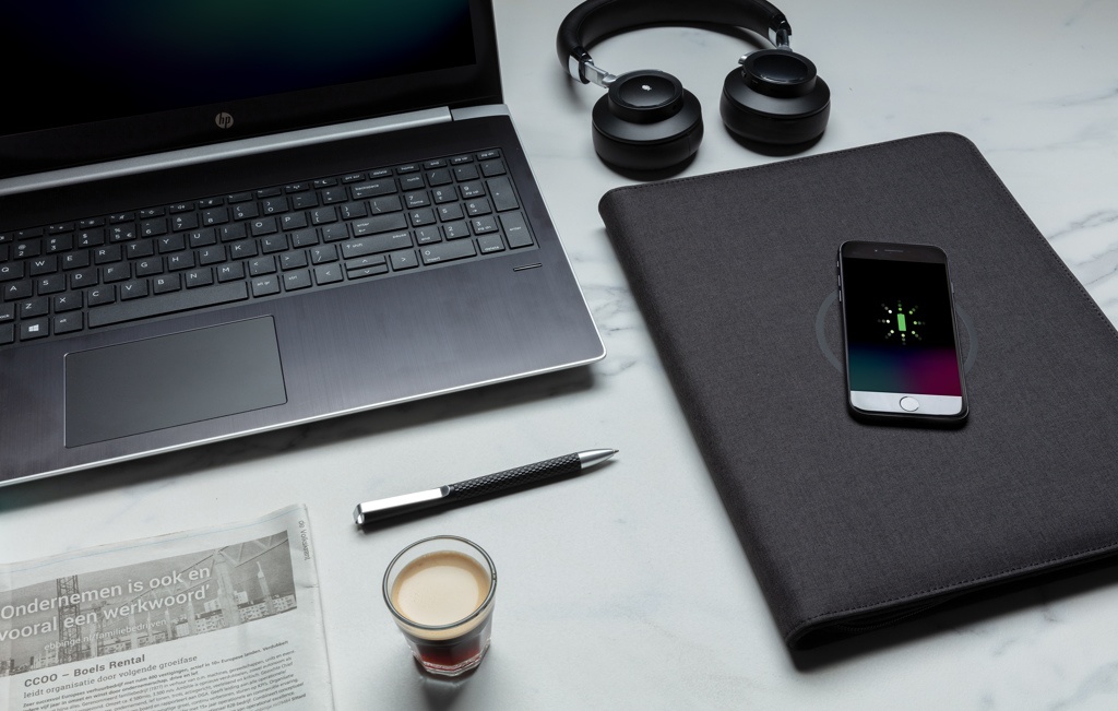 Logotrade kampanjprodukter bild: Air A4 portfolio med trådlös laddning och powerbank