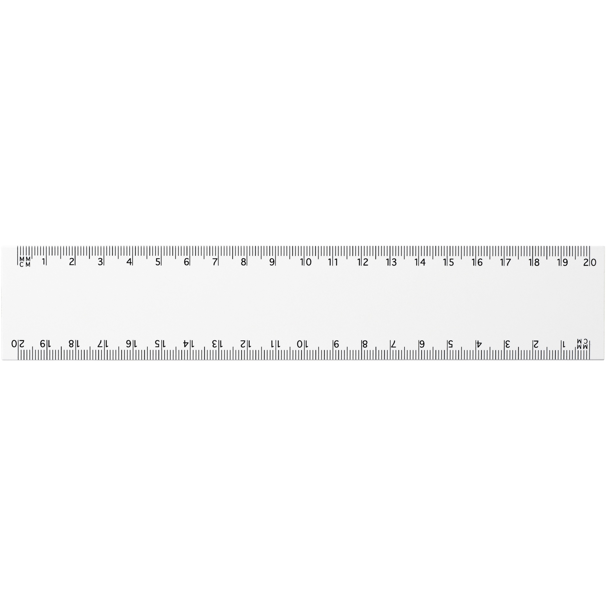 Flexibel och lätt plastlinjal tillverkad i syntetiskt papper på 450 g/m2 med markeringar både i tum och centimeter. Syntetiskt papper 450 g/m². Observera att linjalmarkeringarna skrivs ut tillsammans med tryck, linjaler som beställs utan tryck kommer inte att ha markeringar.