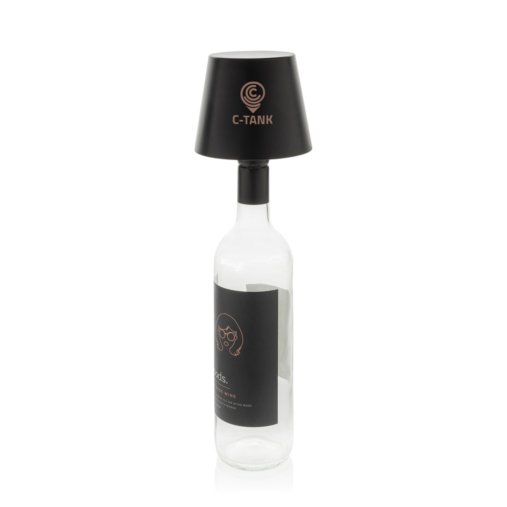 Förvandla vilken tom flaska som helst till en modern bordslampa med den här USB-laddningsbara flasklampan. Stick bara in lampan i en gammal vin- eller spritflaska för att skapa en bordslampa med cool design. Tillverkad av återvunnen ABS-plast. Lampan levereras med ett integrerat 1200 mah A-klassat batteri som stöder användningstiden på en laddning upp till 4 timmar och laddning sker på 2 timmar. Lampan har 31 integrerade LED-lampor som ger 120 lumen. Levereras i plastfri FSC-mix förpackning. Totalt återvunnet innehåll: 32% baserat på total produktvikt. RCS-certifiering säkerställer en helt certifierad leveranskedja för återvunnet material. PVC-fri. Type C laddningskabel i återvunnen TPE medföljer.