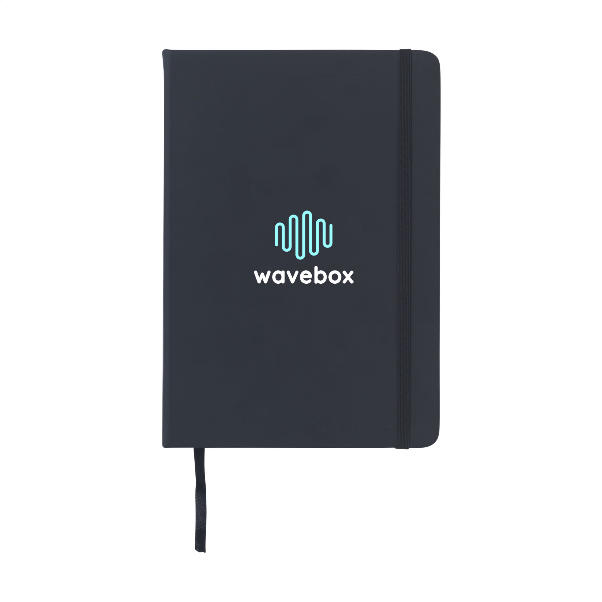 Praktisk anteckningsbok i A5-format. Med hårt PU-överdrag, ca. 80 ark/160 sidor krämfärgat, fodrat FSC Mix-certifierat papper (70 g/m²), elastisk stängning och bandmarkör.