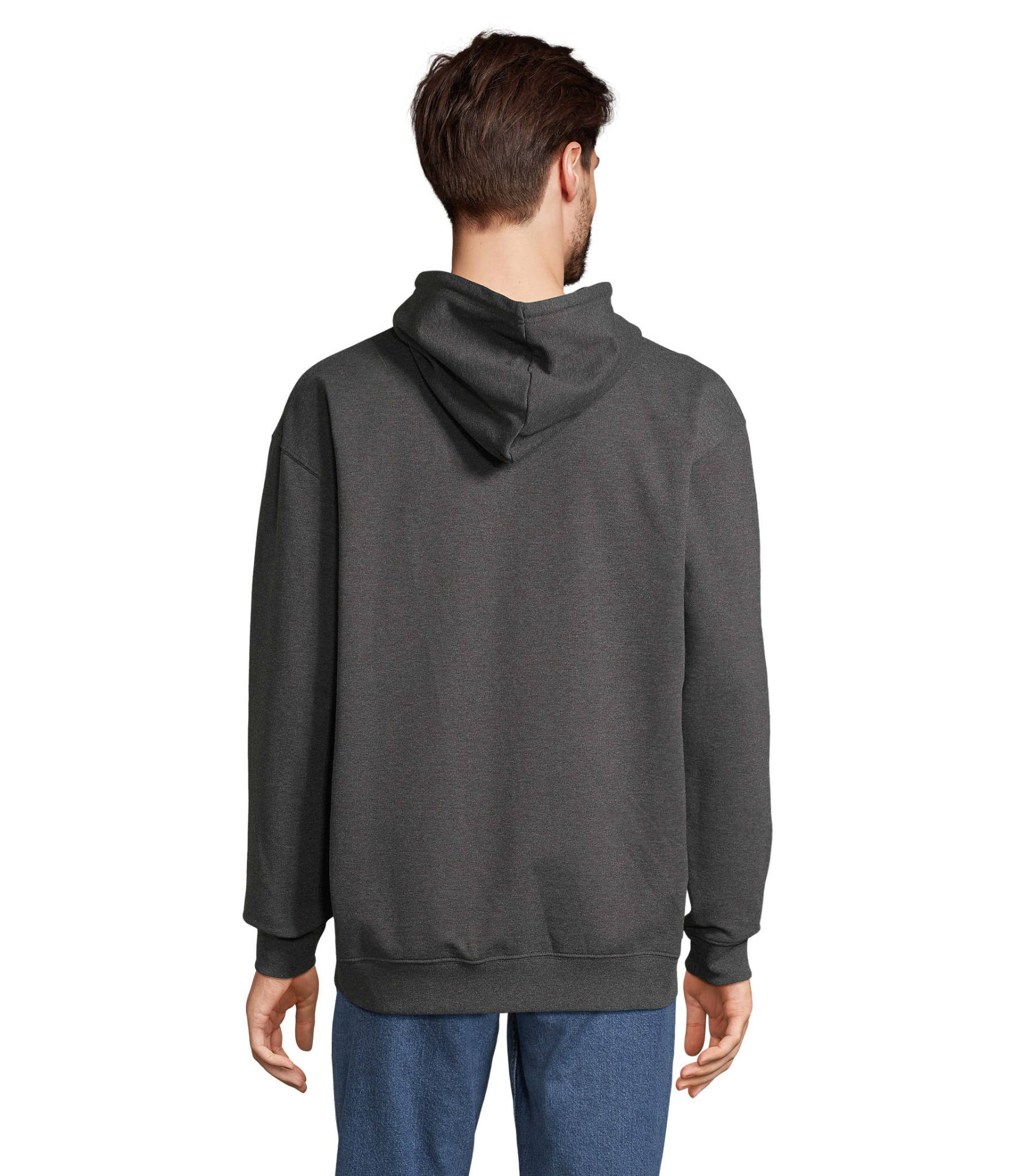 SOL'S CARTER, Hoodie med hel dragkedja 80% bomull - 20% Grs certifierad återvunnen polyester Ärmar med instick, skuren och sydd, 1X1 ribbade ärmslut och nederkant, känguruficka, fodrad huva med ton i ton dragsko och metallöglor, knäppning fram med dold dragkedja, ton i ton injicerad plastdragkedja med ton i ton metalldragkedja, halvmåne i trikå och nackband inuti kragen (1) Grey Melange : 73 % bomull / 20 % återvunnen polyester / 7 % viskos,(2) Charcoal Melange : 60 % bomull / 40 % återvunnen polyester. för matchande storlekar, se storlekstabellen i avsnittet om produktdokumentation.