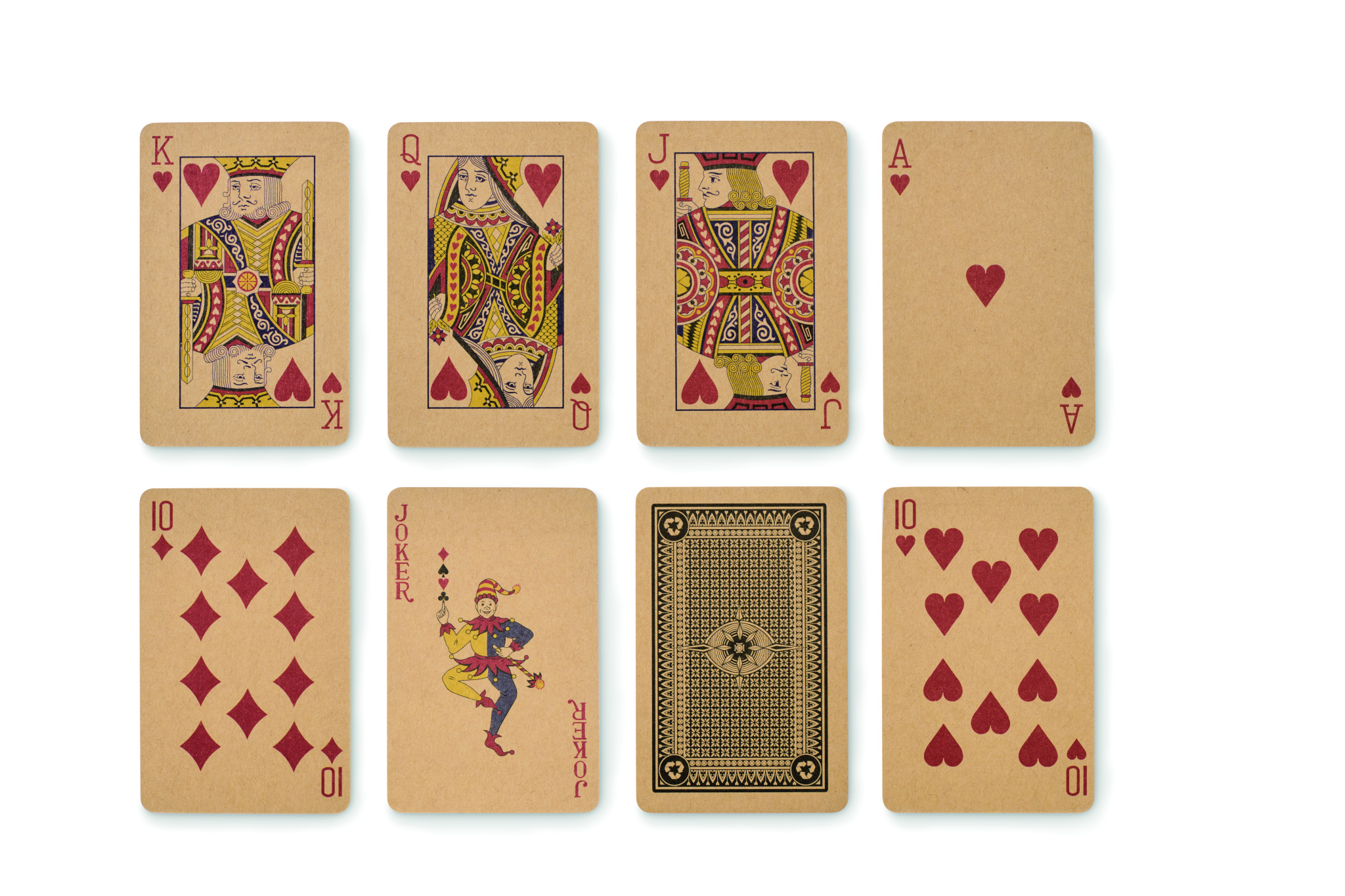 Domino i trä och spelkort i återvunnet papper. Levereras i MDF-låda.