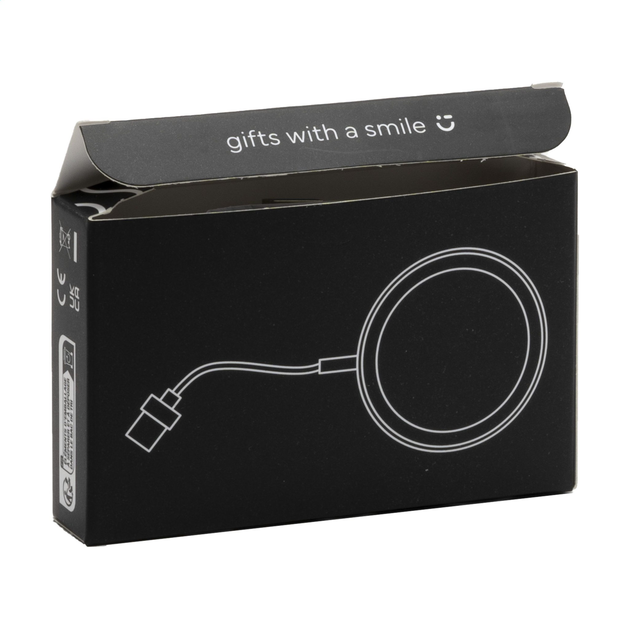 Magnetisk 10W laddare med hölje av återvunnen ABS. Du kan ladda din smartphone trådlöst med denna laddare, och tack vare den magnetiserade basen kan din telefon vara ansluten till den även när du använder telefonen. Denna laddare är idealisk om du vill ladda din mobila enhet medan du ringer eller tittar på en video. De integrerade magneterna (11 högkvalitativa värmebeständiga N52H) i denna laddare är perfekt inriktade och ser alltid till att din telefon är korrekt placerad för optimal laddning. En extra magnetisk metallring ingår också för att stödja laddning av icke-magnetiska trådlösa uppladdningsbara smartphones. Denna produkt är kompatibel med iPhone 12 och högre. Utgång: DC 9V/1,1A (15W) för snabbladdning. Inkluderar en kabel (USB-A & Type-C) och användarmanual. Både produkten och dess tillbehör är PVC-fria. Varje artikel levereras i en individuell brun kartong.
