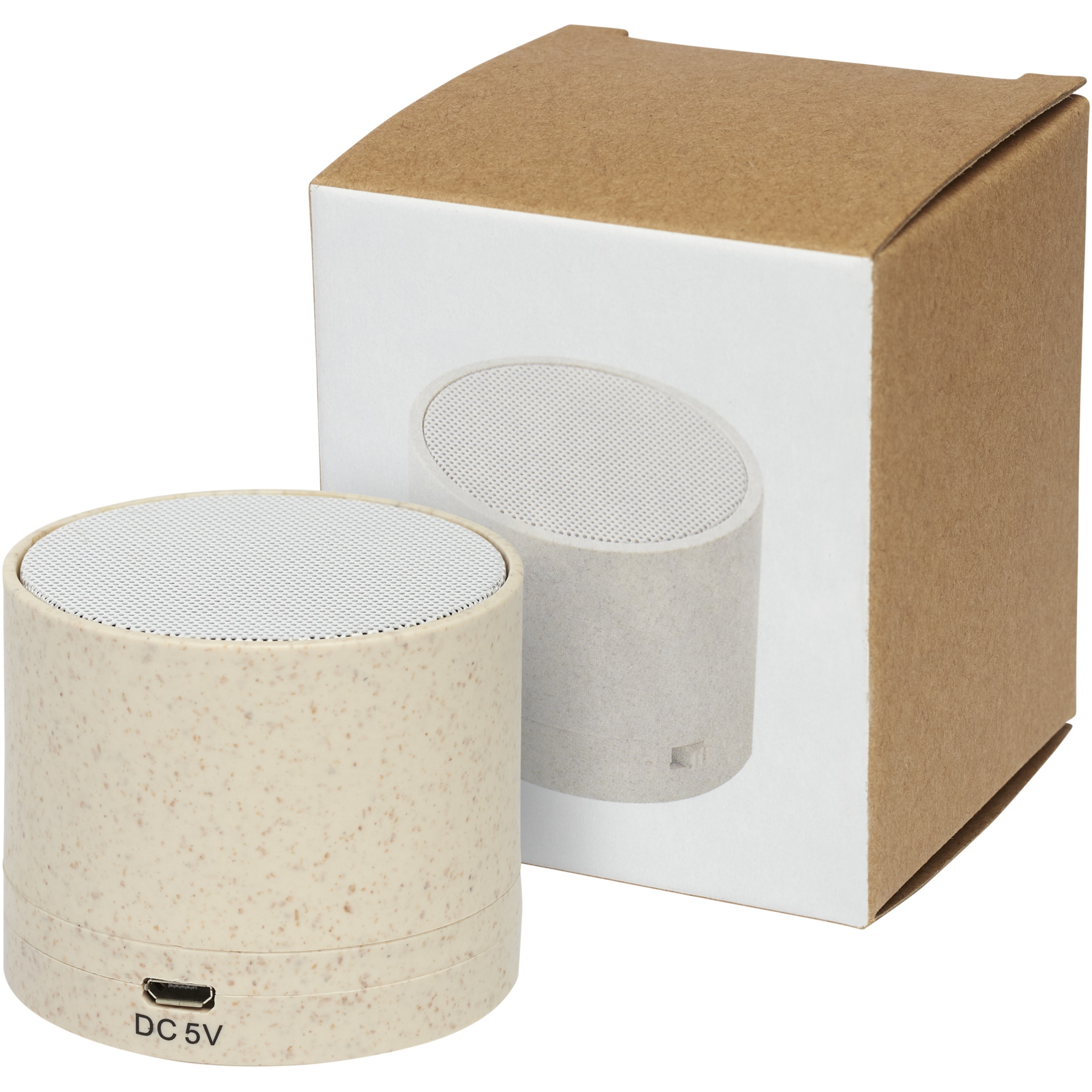 Bluetooth® högtalarfodral av halm och plastmaterial blandat, vilket minskar mängden plast som behövs. Högtalaren producerar kristallklart ljud under över 1,5 timmars uppspelningstid vid maximal volym med 3 W-utgång. Bluetooth® 5.0. Förpackad i en presentförpackning och levereras med en bruksanvisning (båda tillverkade av hållbart material) Micro-USB laddningskabel medföljer.