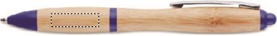Kulspetspenna i bambu med detaljer i plast. Blått bläck.