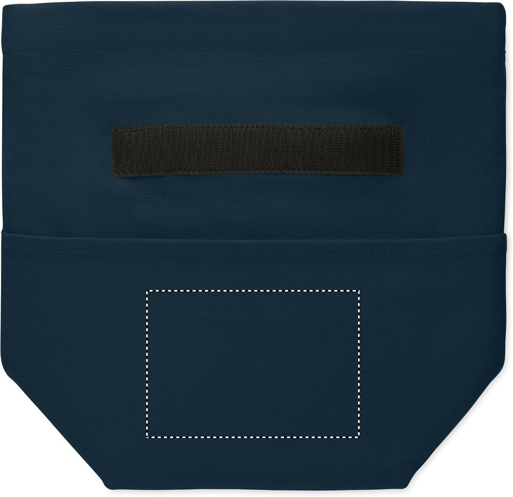 Isolerad kylväska i återvunnen bomull (70% återvunnen bomull, 30% RPET) med rullstängning med kardbporrelås. Isolering: 3 mm PE-skum med 12C PEVA.