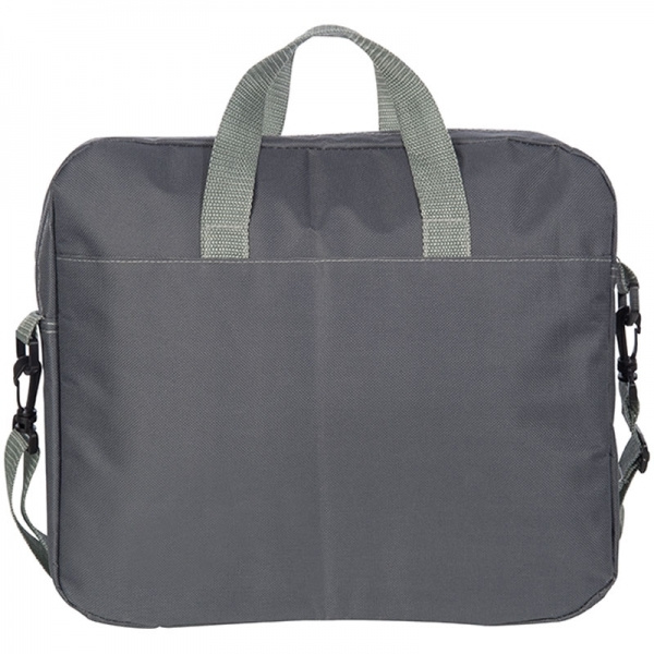 Grå laptopväska med ljusa accenter, rymligt innerfack och främre fack där vi kommer att trycka din logotyp.