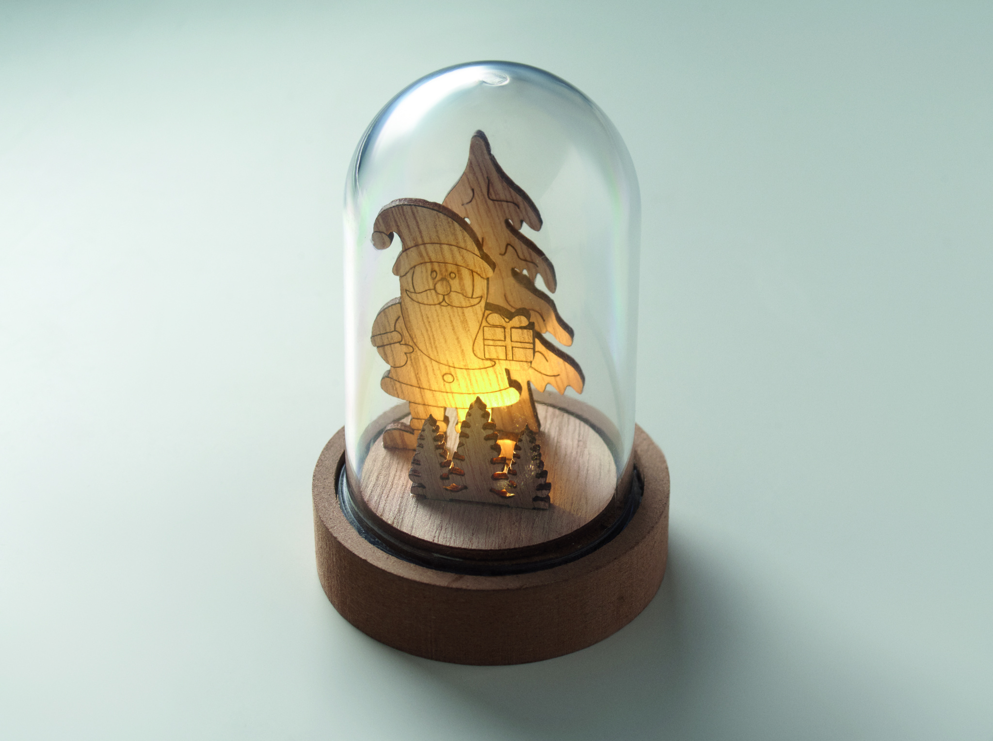 Julprydnad i fodral av MDF och PET med 1 LED-lampa. Inklusive 3 cellbatterier.