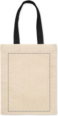Liten present- eller goodiebag i bomull med korta handtag. 140 gr/m².