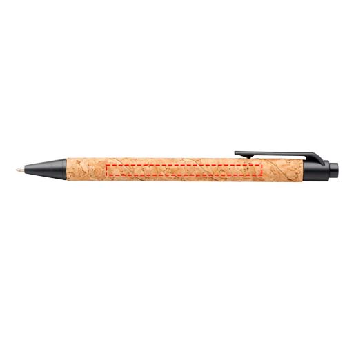 Midar kulspetspenna i kork och halm. Miljövänlig kulspetspenna med klickmekanism, pennkropp i kork och utsmyckningar i halm som finns tillgängliga i en mängd olika färger. Halm är stjälken som blir över efter att vete skördas. Detta minskar mängden plast som används vilket ger ett miljövänligt alternativ. Korkmaterialets färg kan variera. Kork, halmplast.