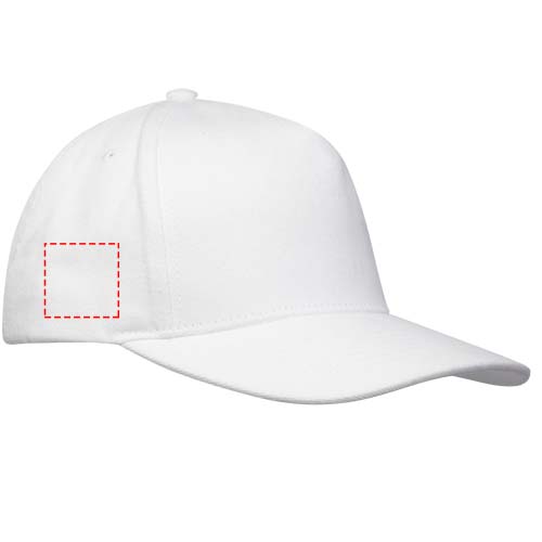 5-panelskepsen Onyx är tillverkad av 70 % återvunnen bomull och 30 % återvunnen polyester. Den är utformad för bekväm passform med en huvudomkrets på 58 cm och metallspännet säkerställer enkel och säker justering. Kepsen innehåller Cyclo®-återvunna fibrer där försorterat avfall som bestämmer garnets färg har använts. Dessa fibrer minskar inte bara behovet av nya resurser utan bidrar också ett engagemang för ett cirkulärt liv genom att minska mängden avfall och verka för ett slutet kretslopp. Alla kepsar levereras dessutom med en Aware™-spårare. Denna innovativa funktion gör det möjligt för användare att spåra varans ursprung och resa via en QR-kod, vilket ökar transparensen i leveranskedjan och bidrar till en starkare koppling mellan produkten och dess produktionsprocess.