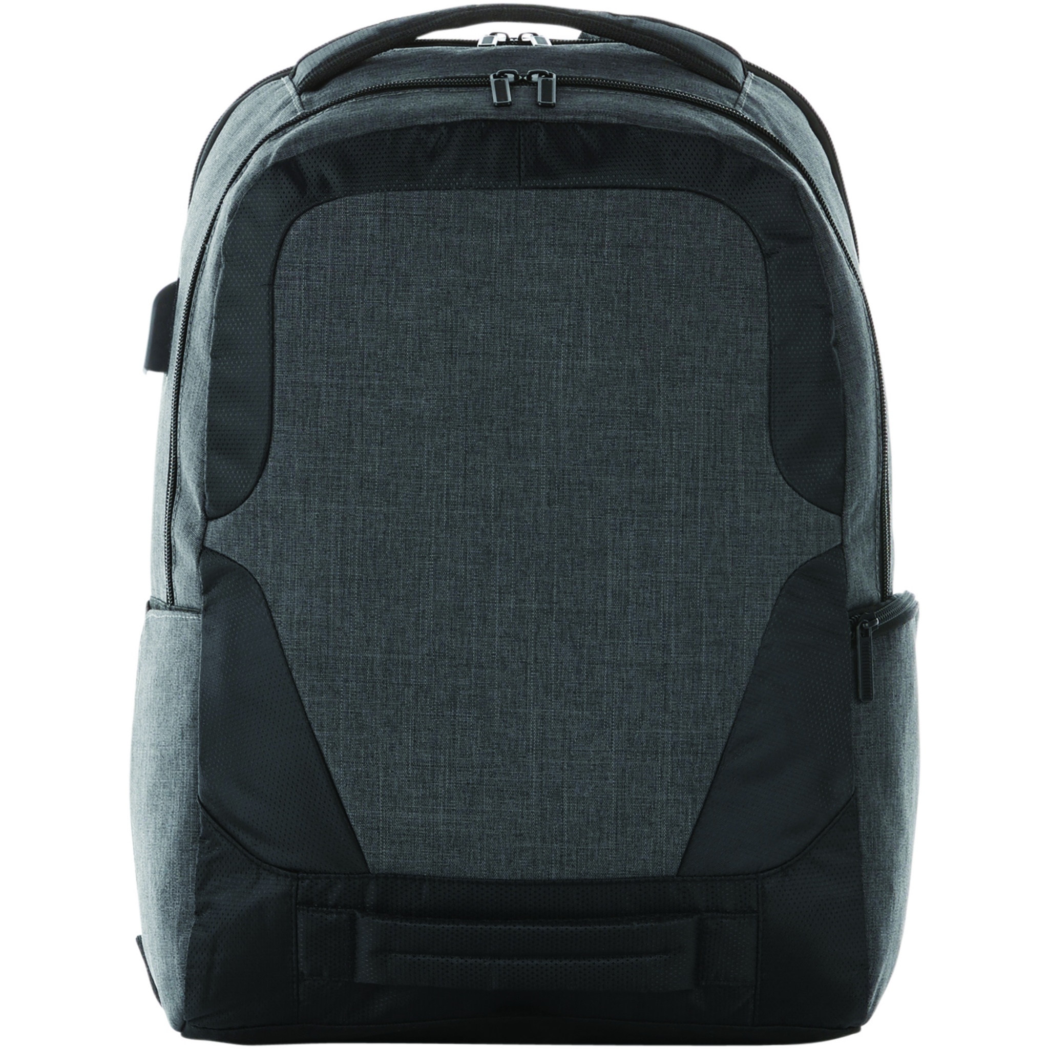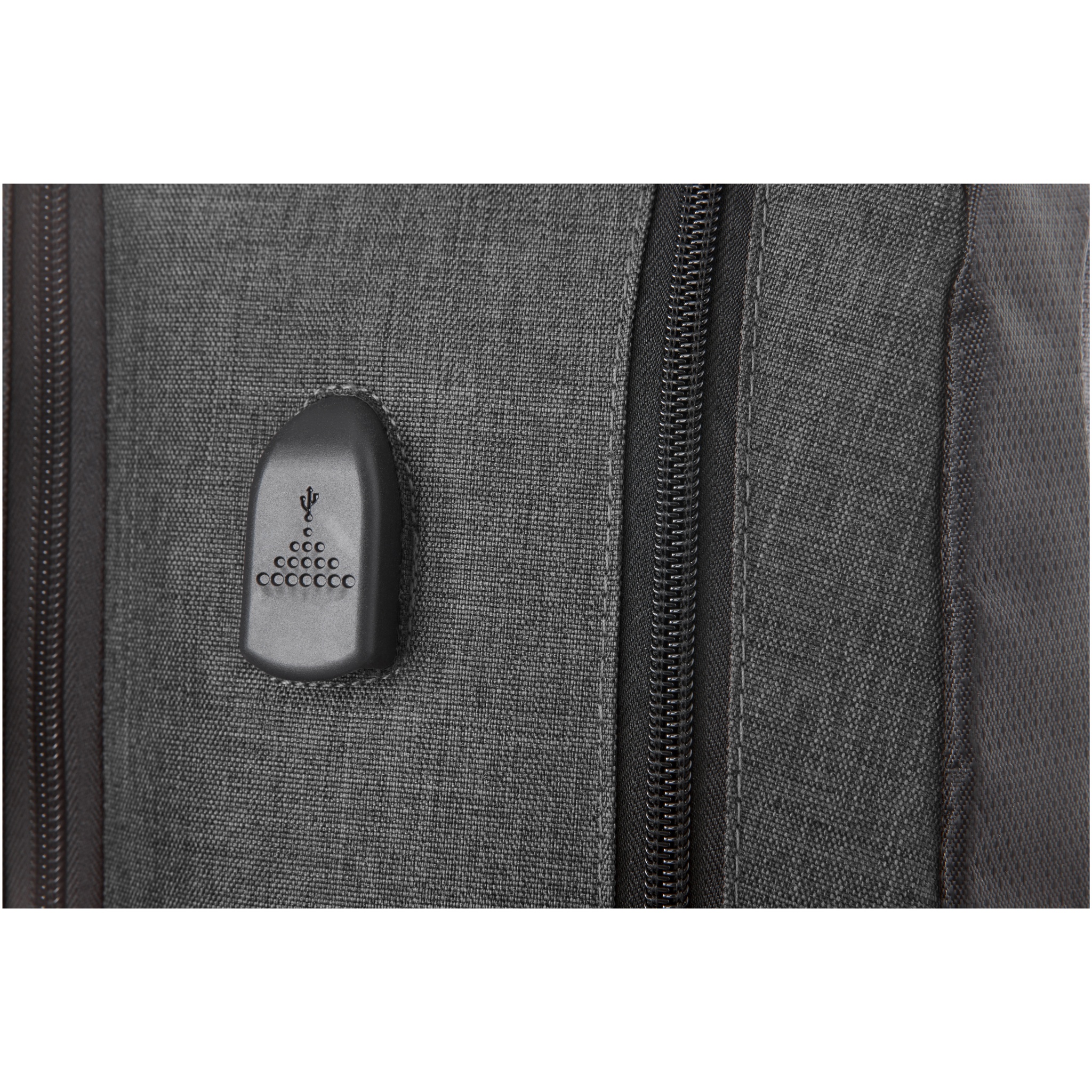 En elegant 17-tums datorryggsäck med USB-port och kabel. Utrustad med RFID-skyddad sidoficka, flera blixtlåsförsedda fickor och rem för rullväska på baksidan. Handtag på ovansida och framsida samt stoppade bärremmar gör den enkel att bära överallt. Det kan finnas mindre variationer i färgen på den faktiska produkten på grund av tygfärgerna, vävar och utskriften.