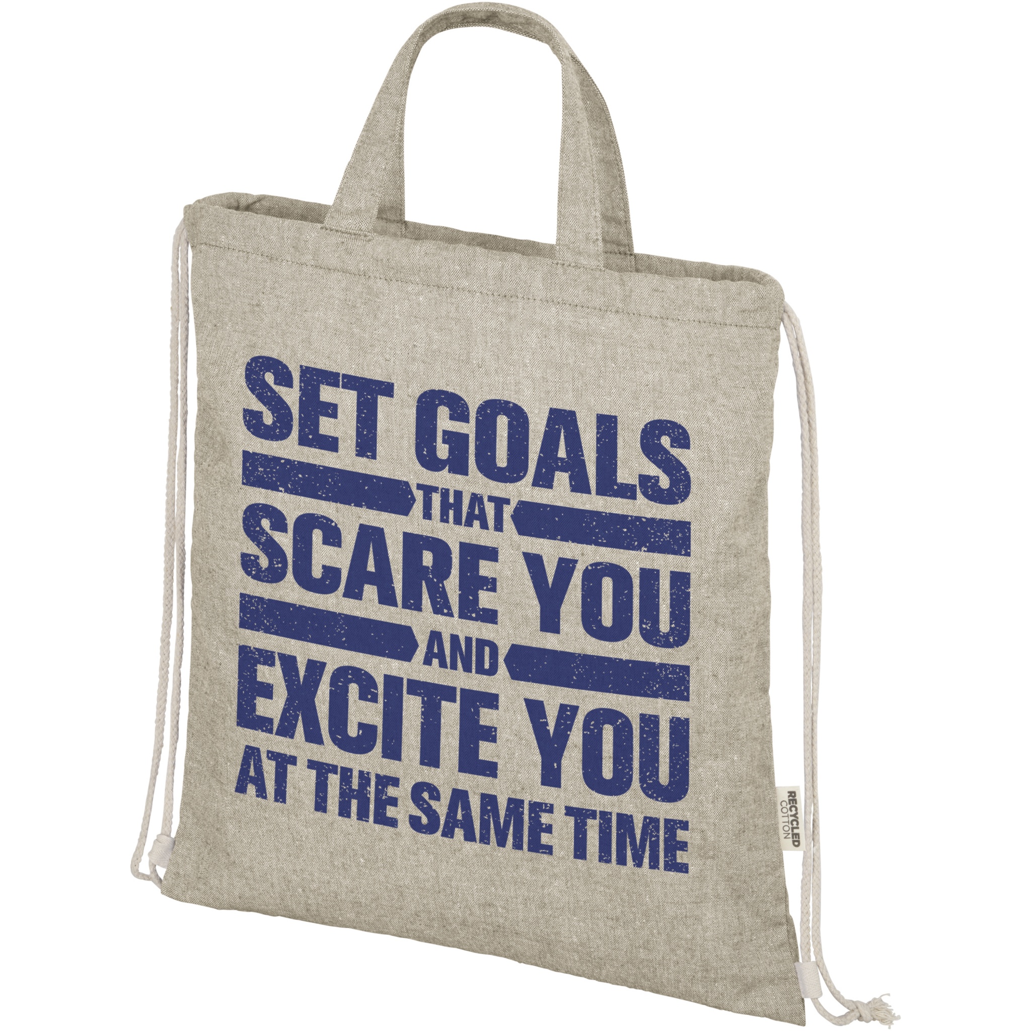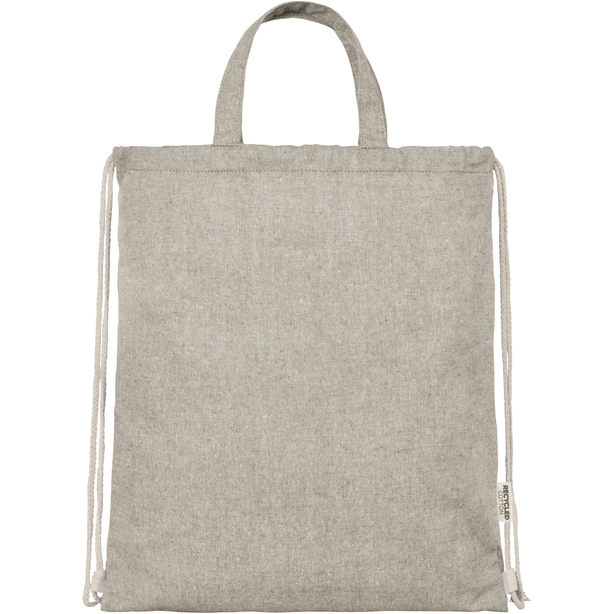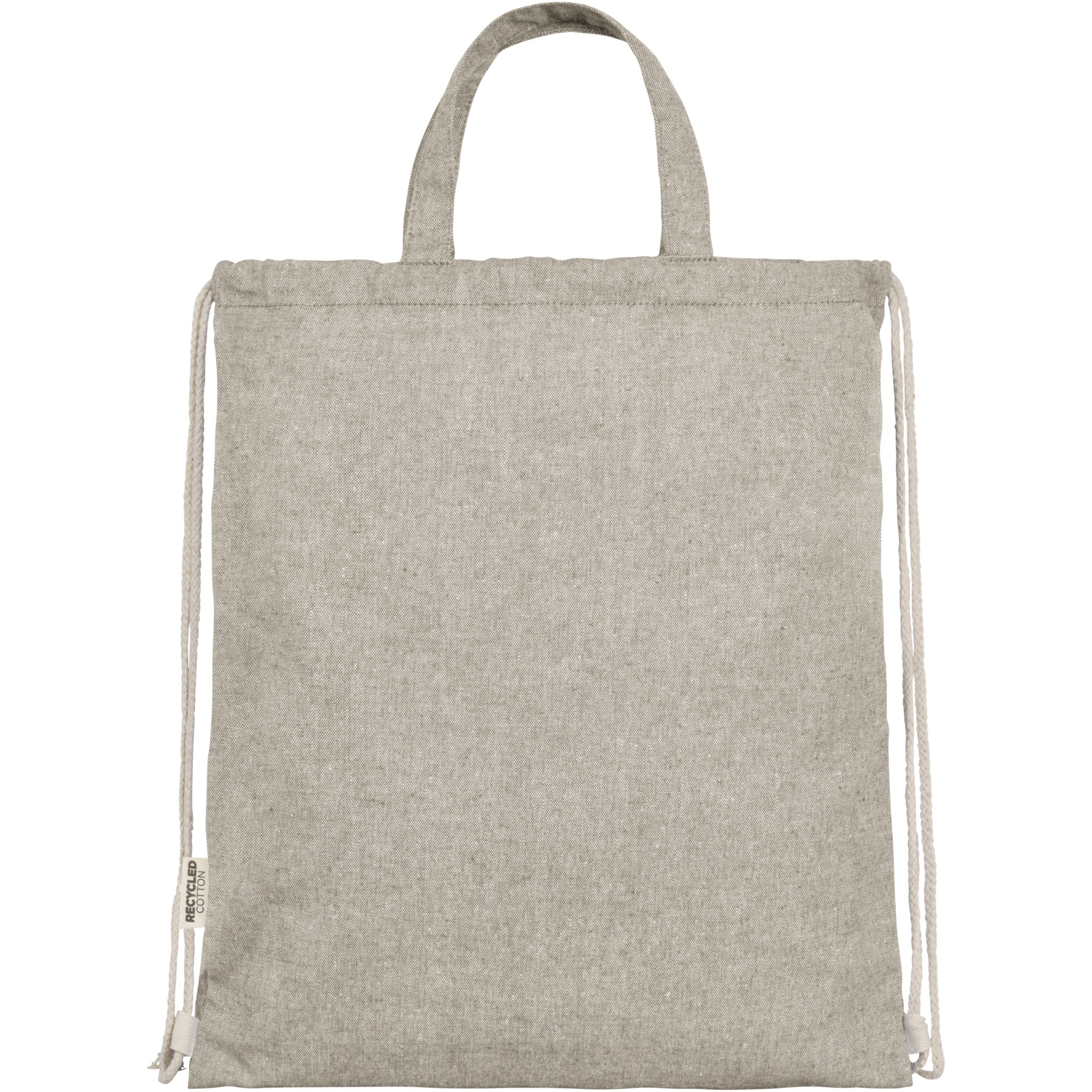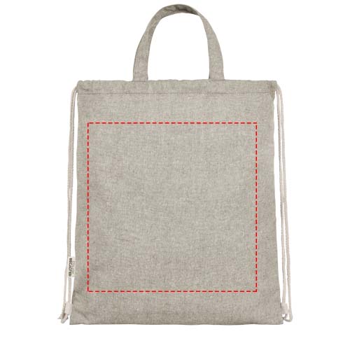 Ryggsäck med dragsko tillverkad av en 150 g/m² återvunnen bomulls- och polyesterblandning. Stort huvudfack med bomullsdragsko i naturlig färg. Återvunnen bomull är tillverkad av konsumentavfall som genereras av textilfabriker under skärprocessen. Liknande färger blandas ihop, så ingen ytterligare färgning krävs. Eftersom bomullen är återvunnen kan det förekomma en mindre färgvariation. Detta bidrar tydligt till ett mer autentiskt utseende. Alla ryggsäckar levereras också med en Aware™-spårare. Denna innovativa funktion gör det möjligt för användare att spåra varans ursprung och resa via en QR-kod, vilket ökar transparensen i leveranskedjan och bidrar till en starkare koppling mellan produkten och dess produktionsprocess. Klarar upp till 5 kg vikt. Handtagets längd: 14 cm.