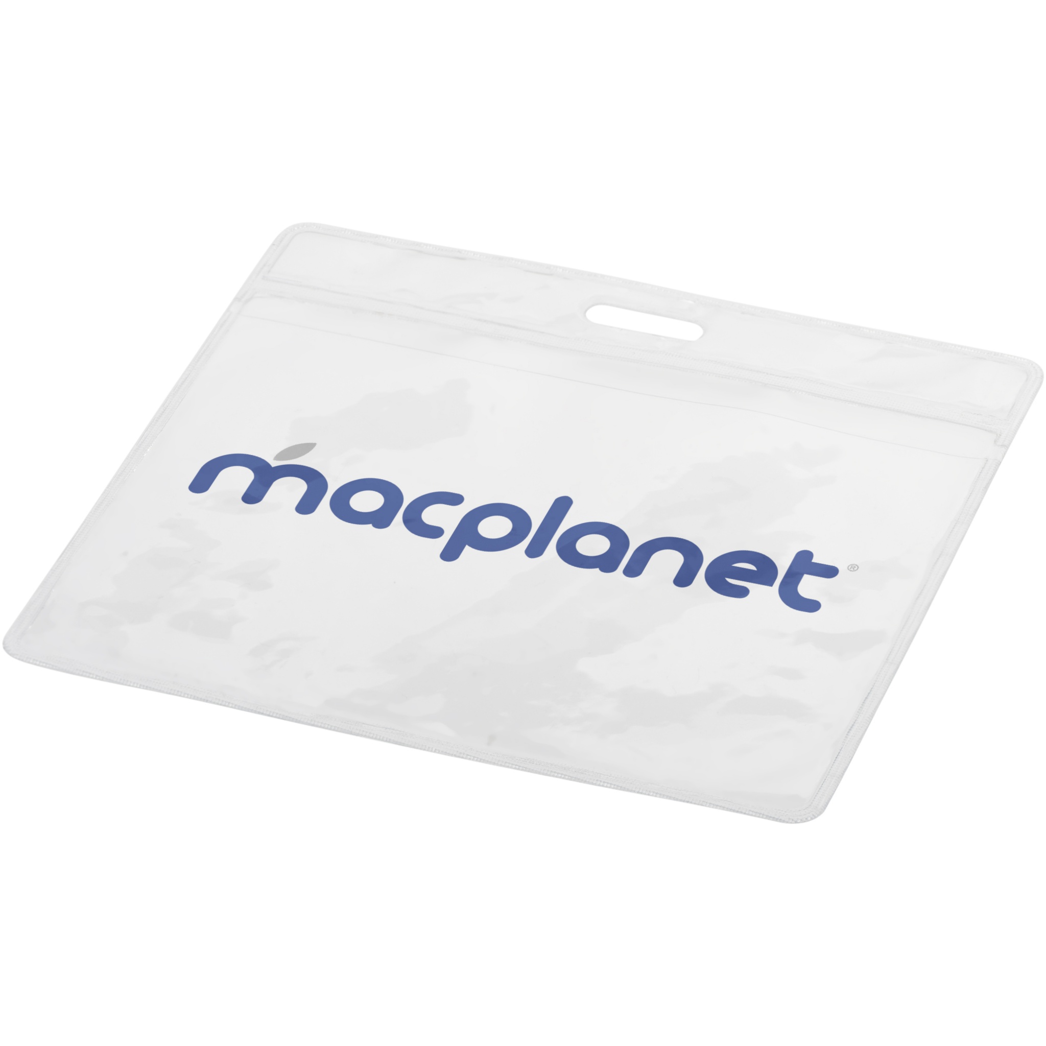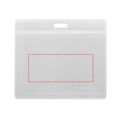 Badgehållare med insats på baksidan och öppning på toppen för att fästa på ett logoband eller clips. Storlek: 8,8 x 10,0 cm. Denna artikel passar ett kort på 9,4 x 6,7 cm.