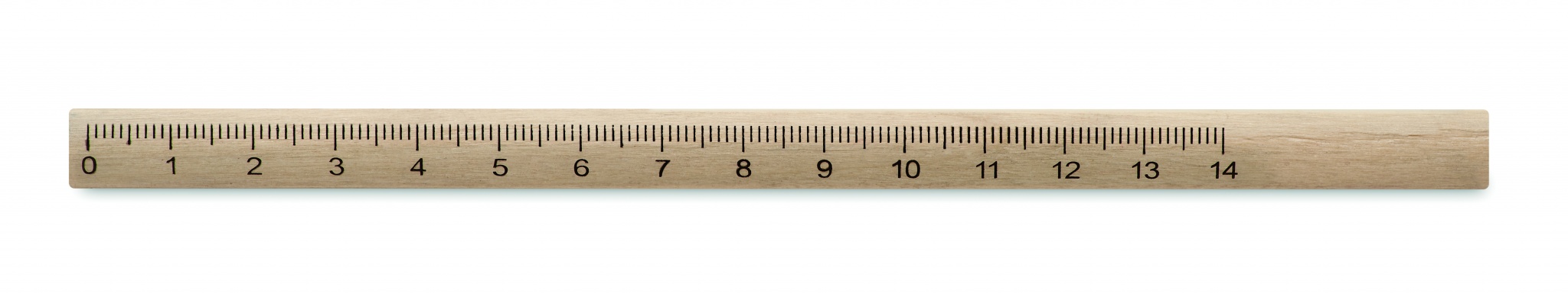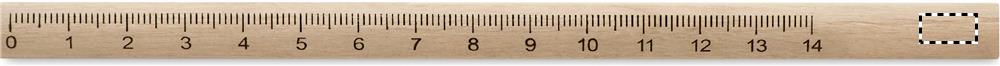 Snickar penna i trä med 14 cm linjal förtryckt på pennan.